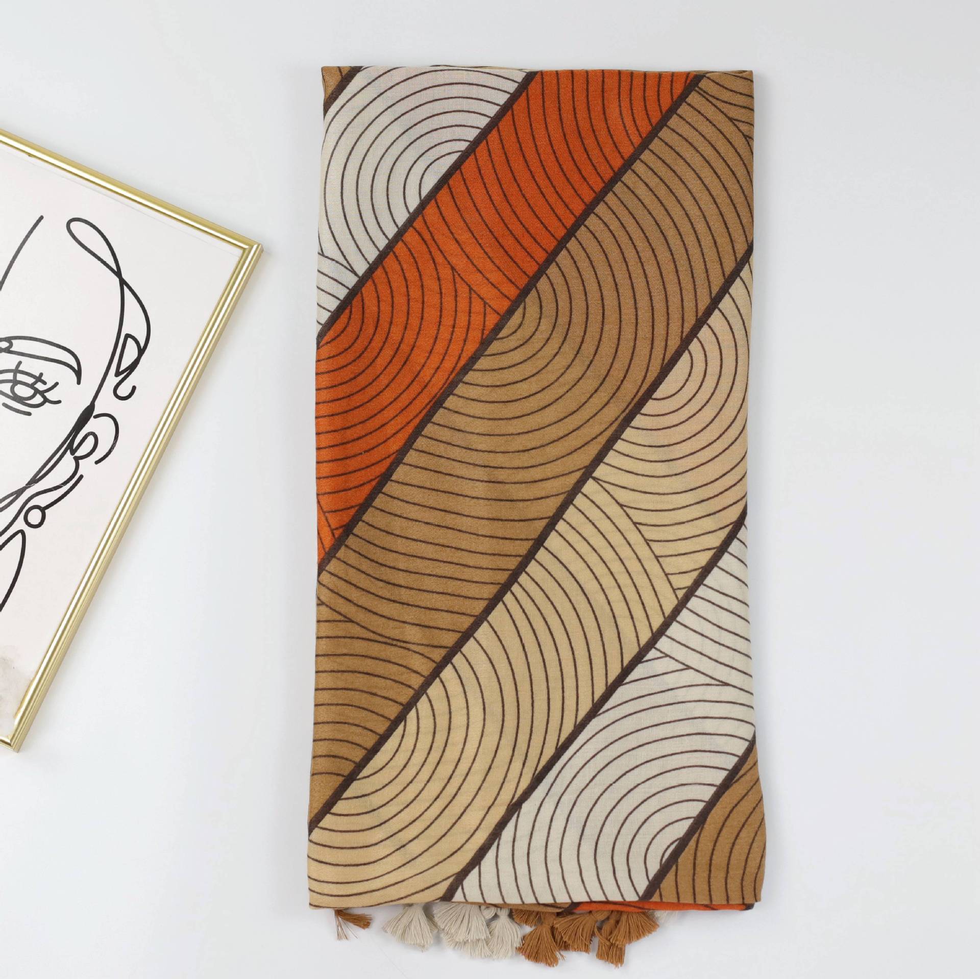 공장 판매 2023 새로운 대외 무역 국경 줄무늬 가우디 새틴 인쇄 긴 수건 여행 휴일 선 스크린 따뜻한 목도리