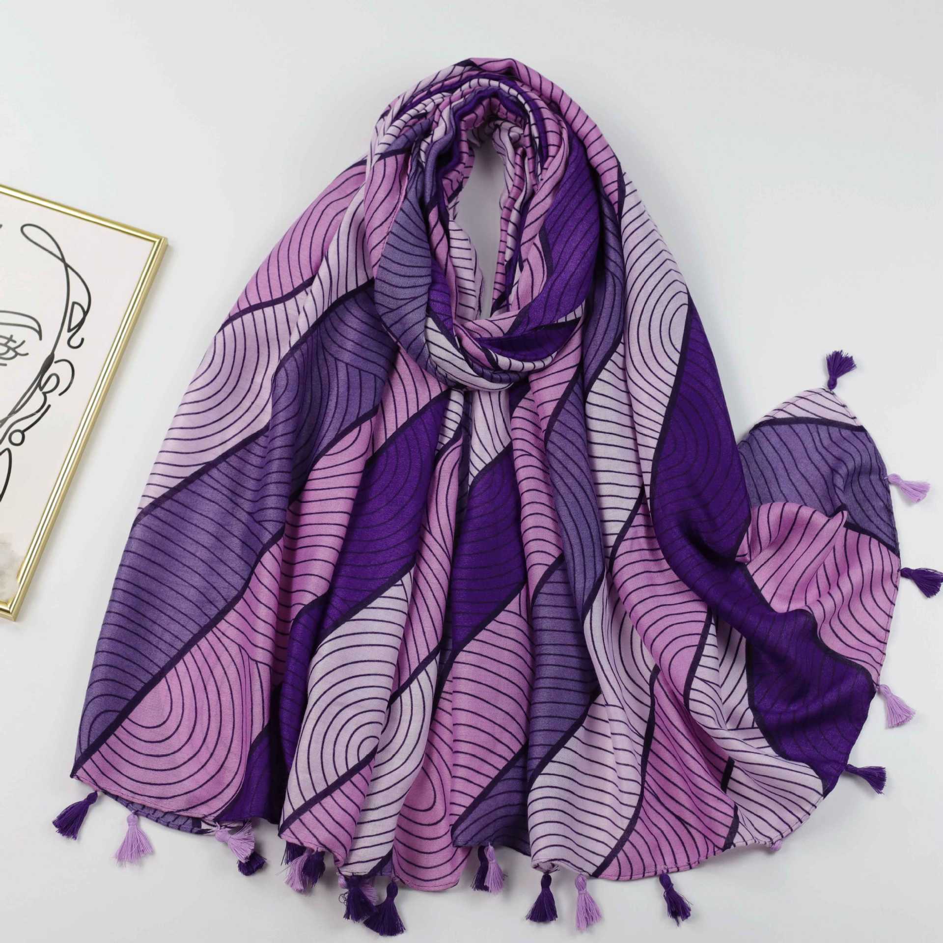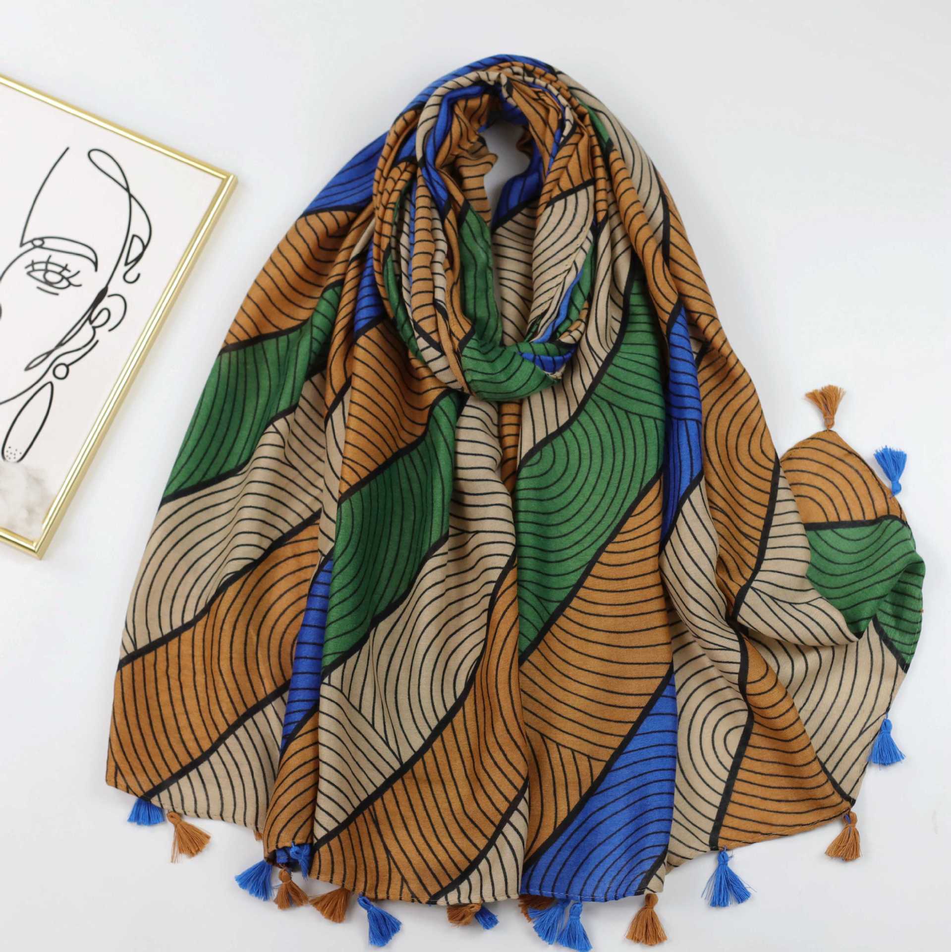 공장 판매 2023 새로운 대외 무역 국경 줄무늬 가우디 새틴 인쇄 긴 수건 여행 휴일 선 스크린 따뜻한 목도리스토어 가기