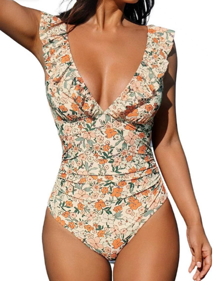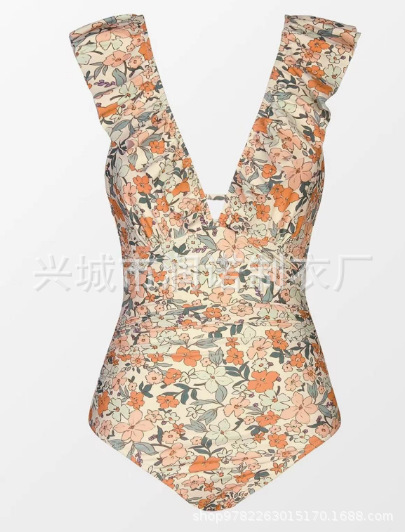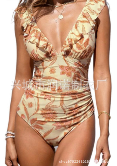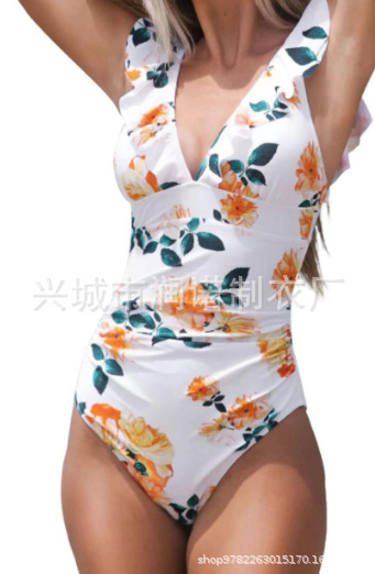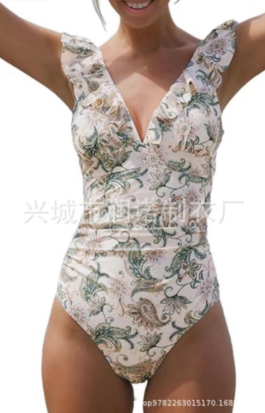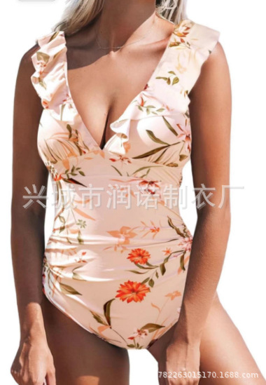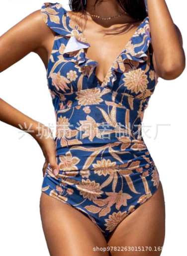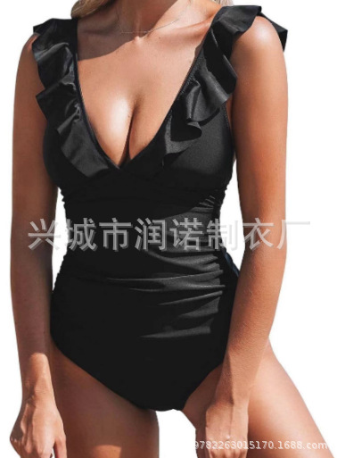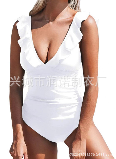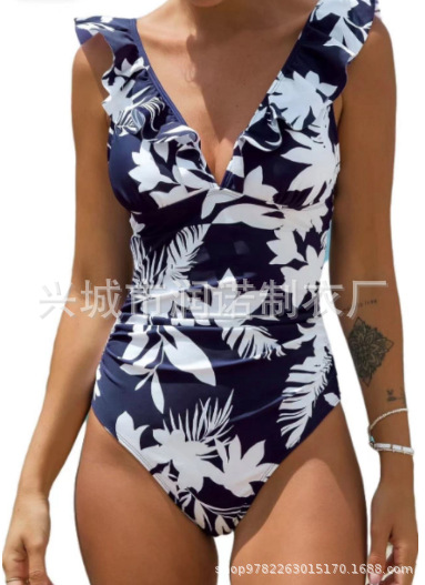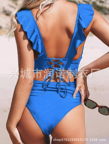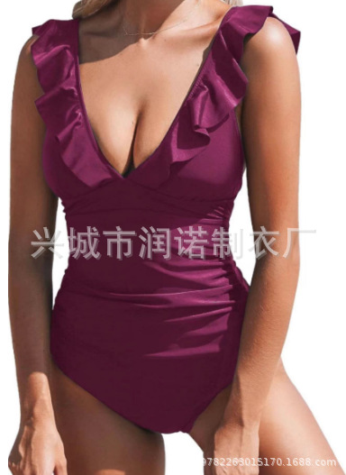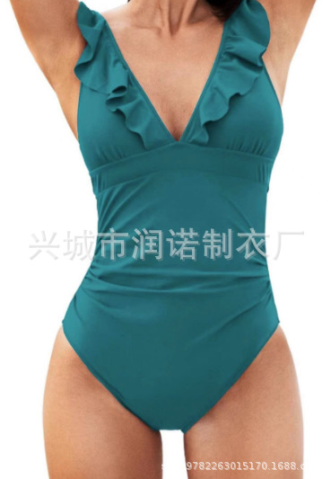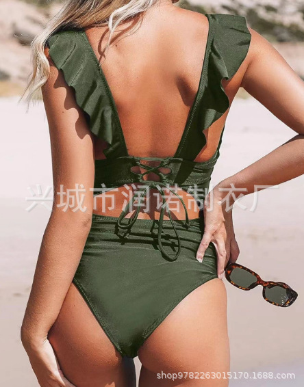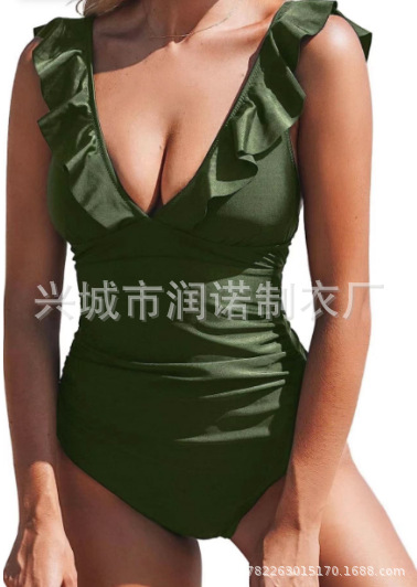 유럽과 미국의 대외 무역 폭발 여성 원피스 수영복 국경 아마존 V 넥 수영복 러플 레이스 업 수영복 수영복