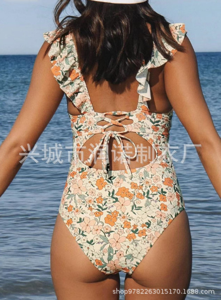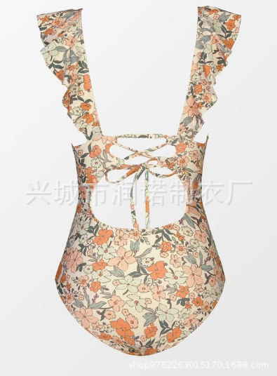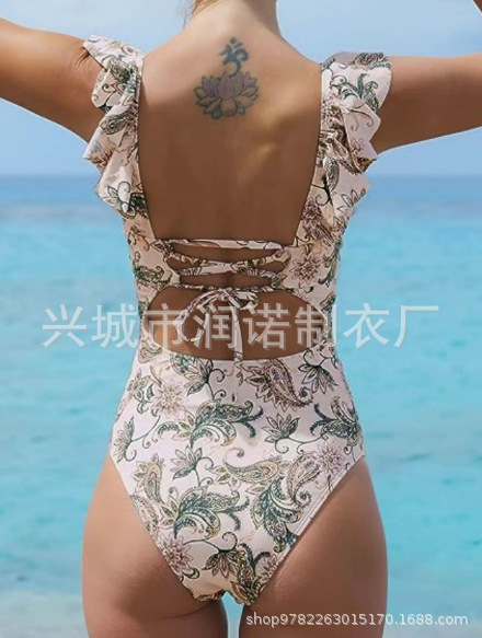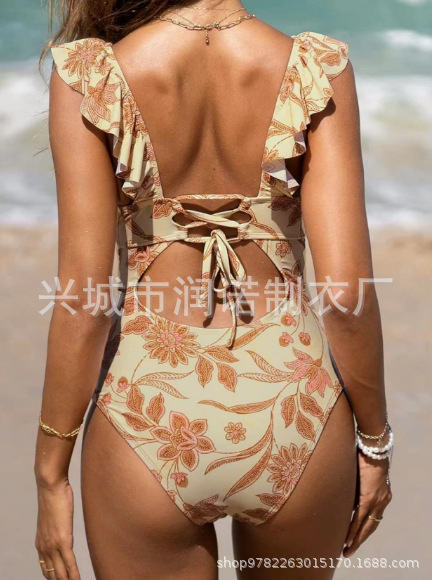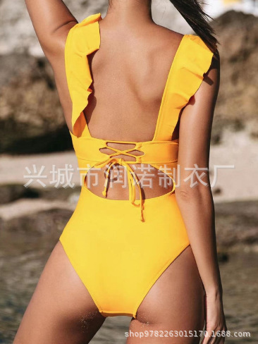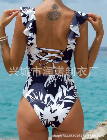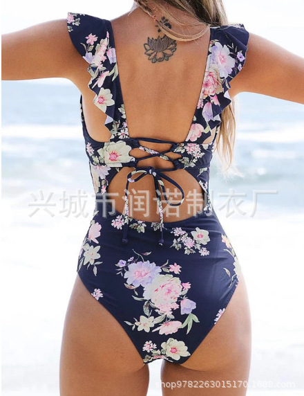 유럽과 미국의 대외 무역 폭발 여성 원피스 수영복 국경 아마존 V 넥 수영복 러플 레이스 업 수영복 수영복스토어 가기