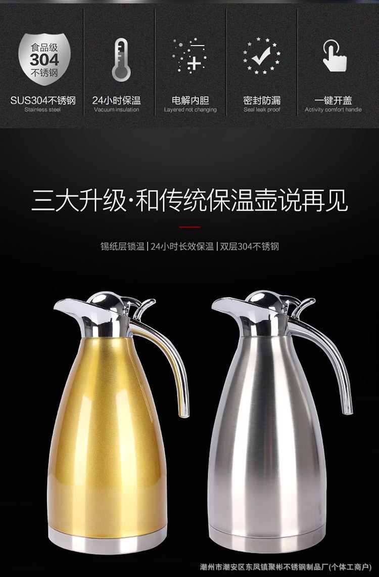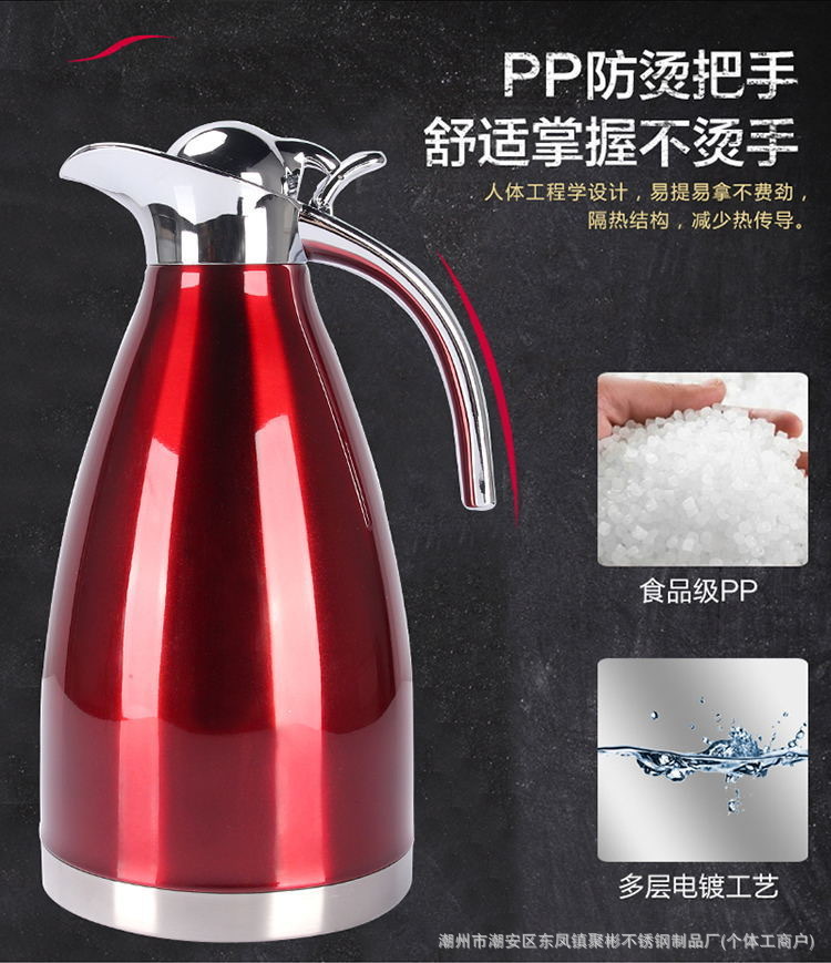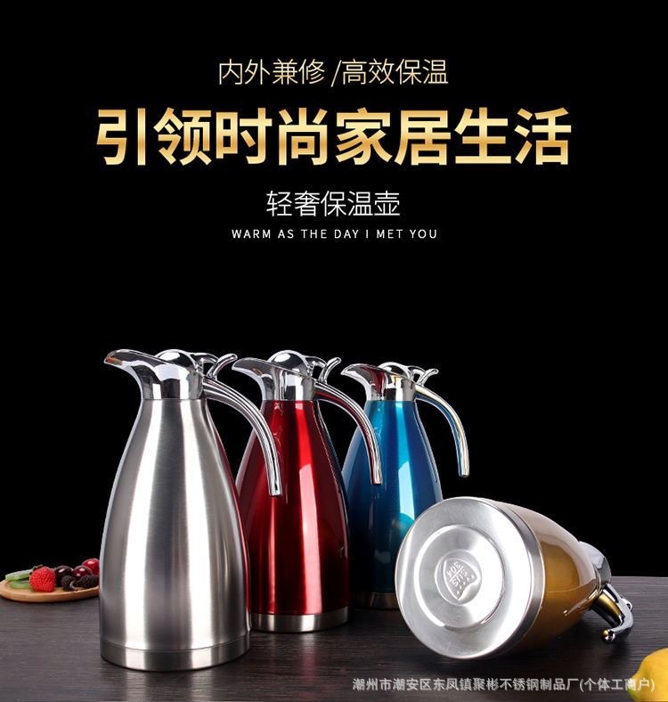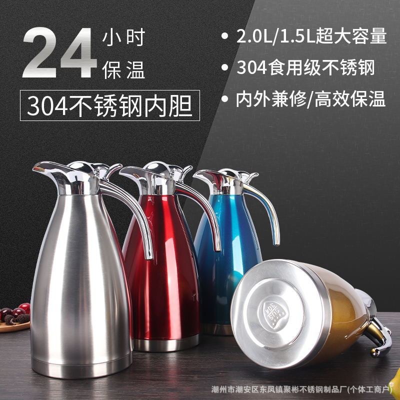 스테인레스 스틸 유럽 진공 커피 보온병 가정용 보온병 주전자 상업 레스토랑 2L 대용량 온수 주전자 도매스토어 가기