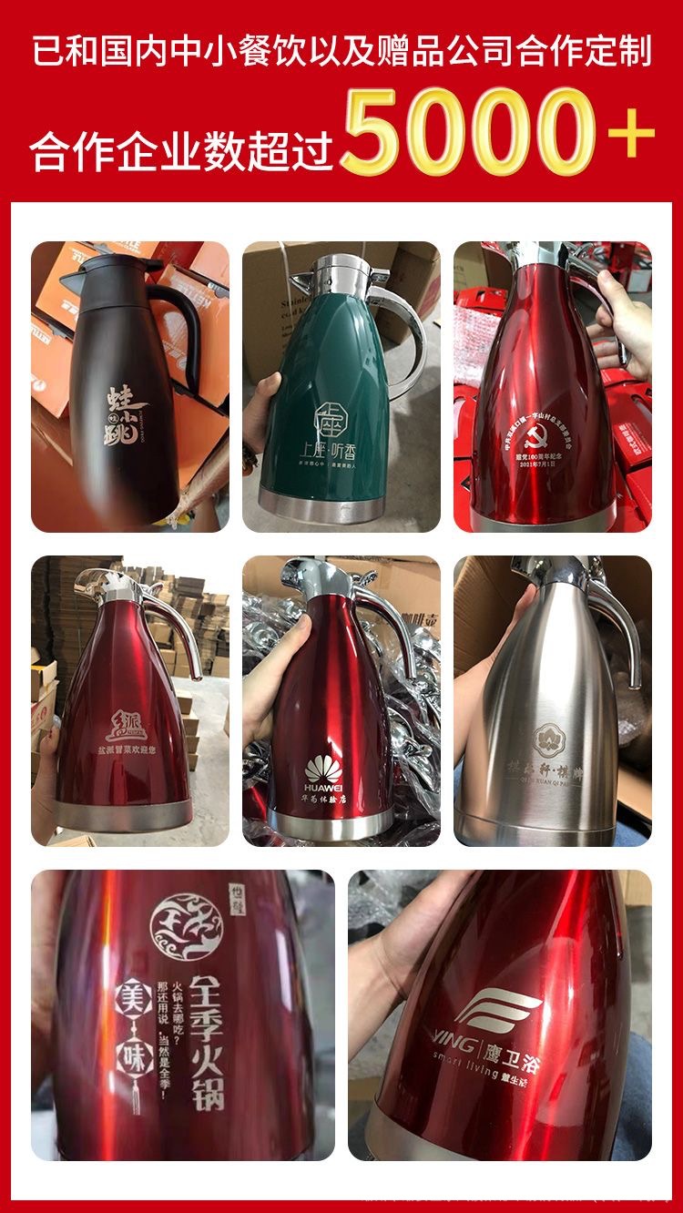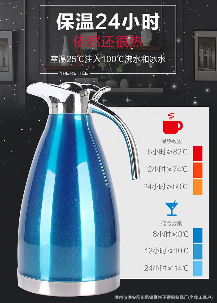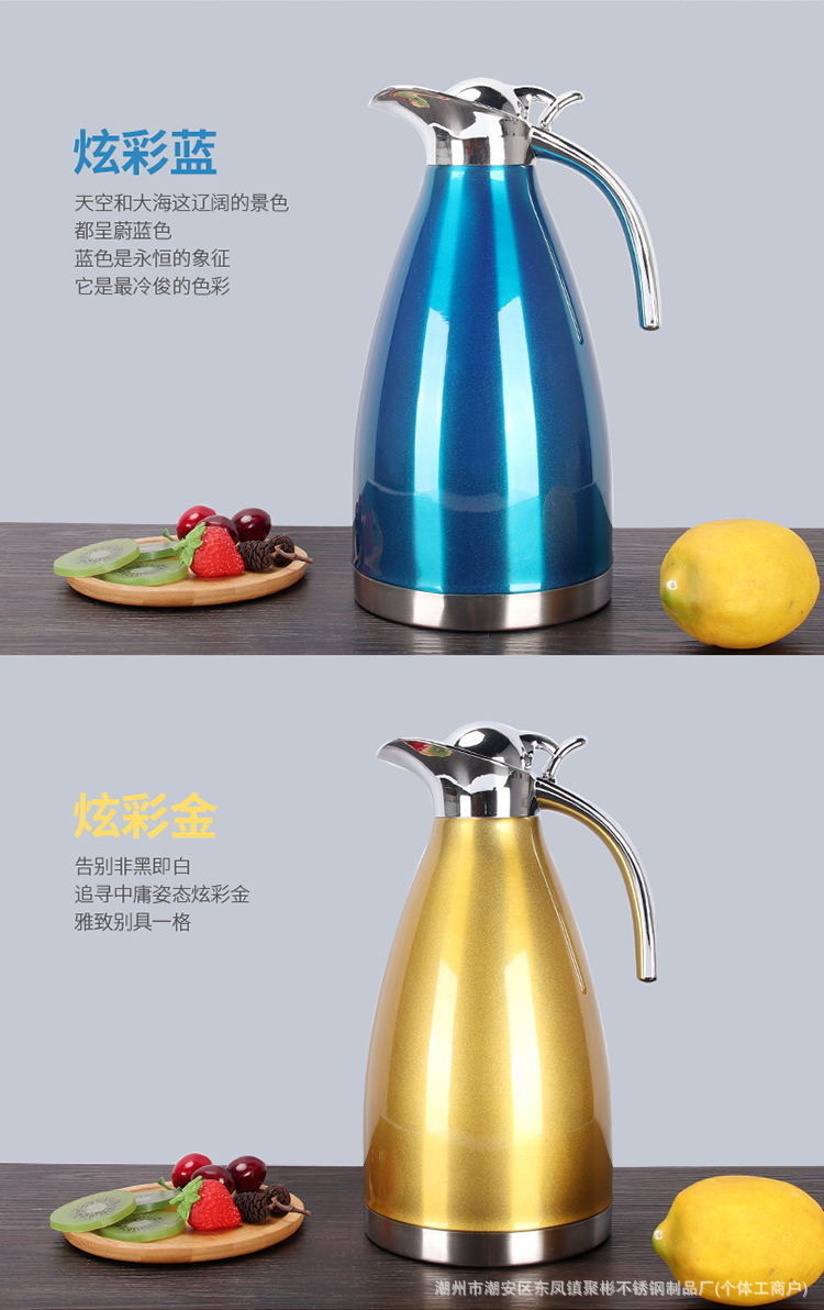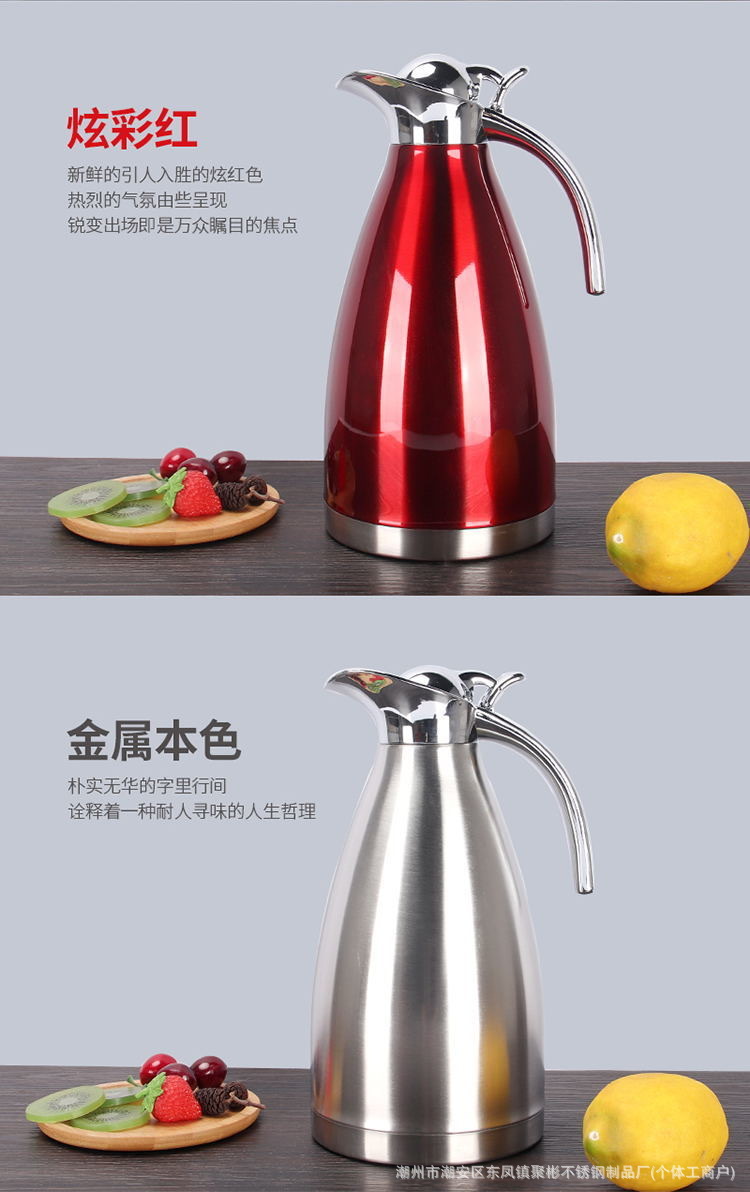 스테인레스 스틸 유럽 진공 커피 보온병 가정용 보온병 주전자 상업 레스토랑 2L 대용량 온수 주전자 도매스토어 가기