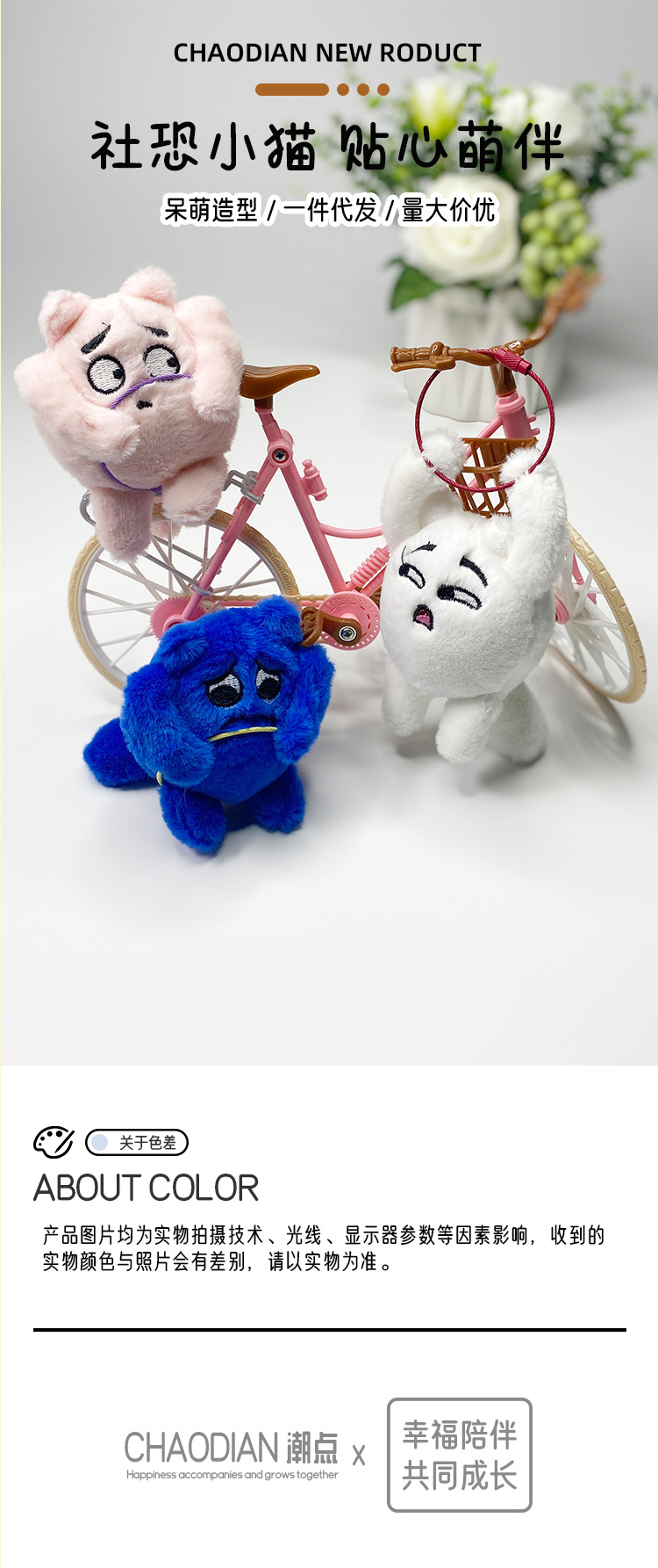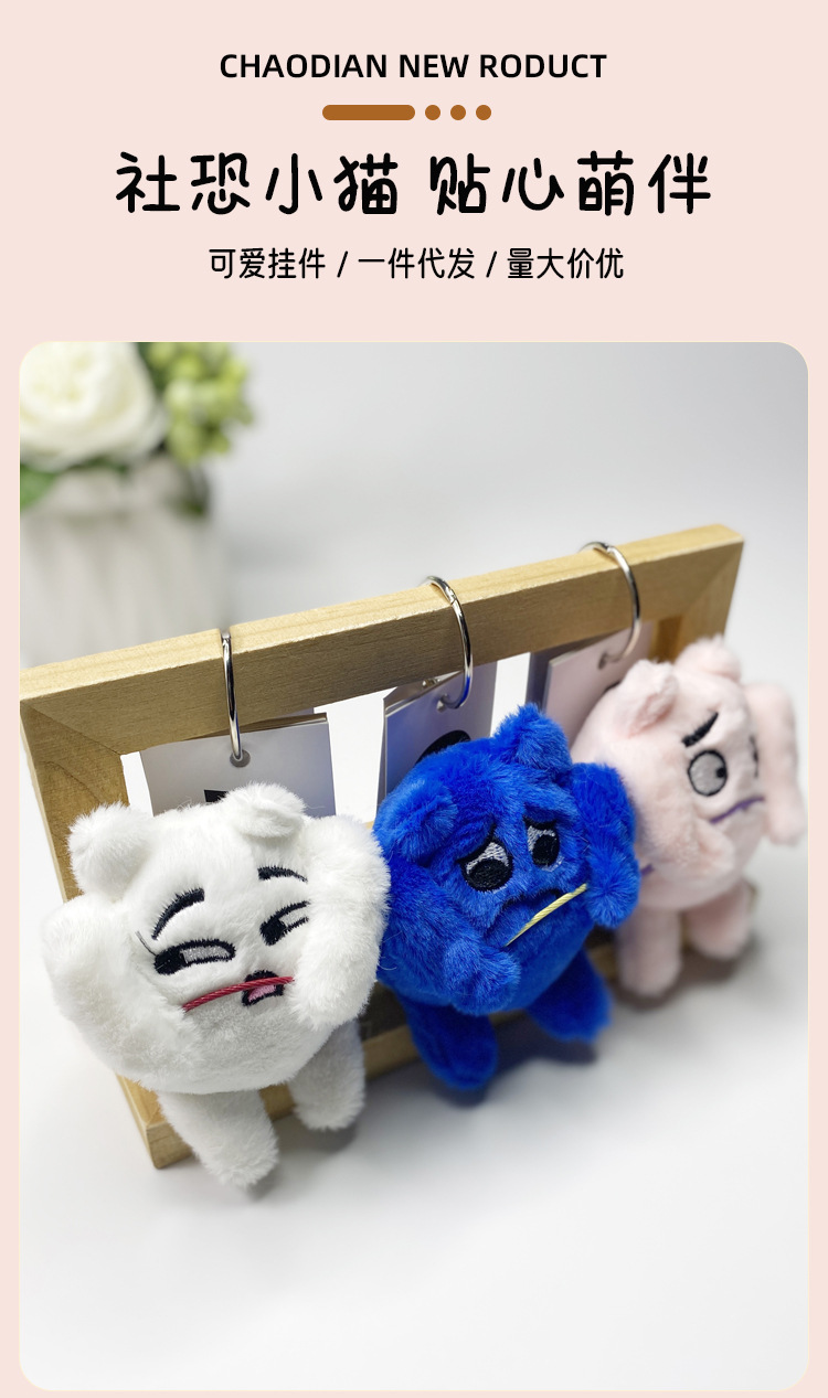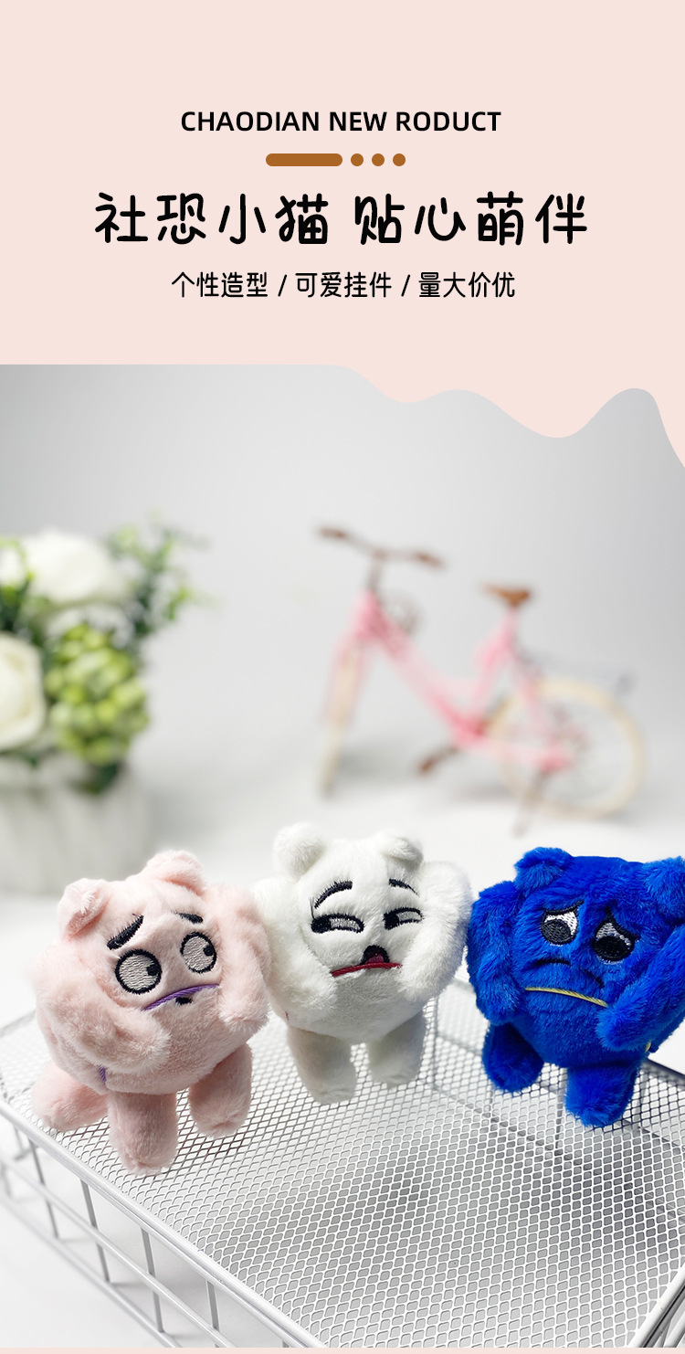 원래 클럽 두려움 작은 오렌지 고양이 불타는 녹색 고양이 치유 봉제 인형 커플 펜던트 귀여운 키 체인 매달려 선물스토어 가기