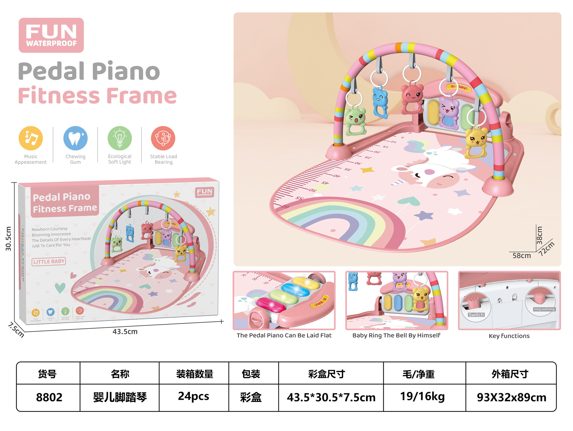 국경 간 새로운 아기 피트니스 프레임 음악 페달 장난감 0-36 개월 핑크 아기 음악 피아노 게임 매트스토어 가기