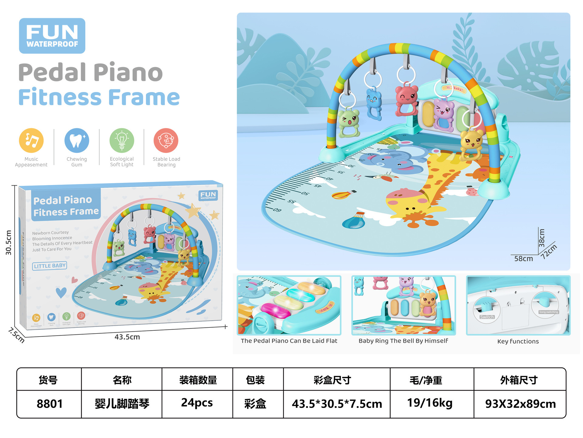 국경 간 새로운 아기 피트니스 프레임 음악 페달 장난감 0-36 개월 핑크 아기 음악 피아노 게임 매트