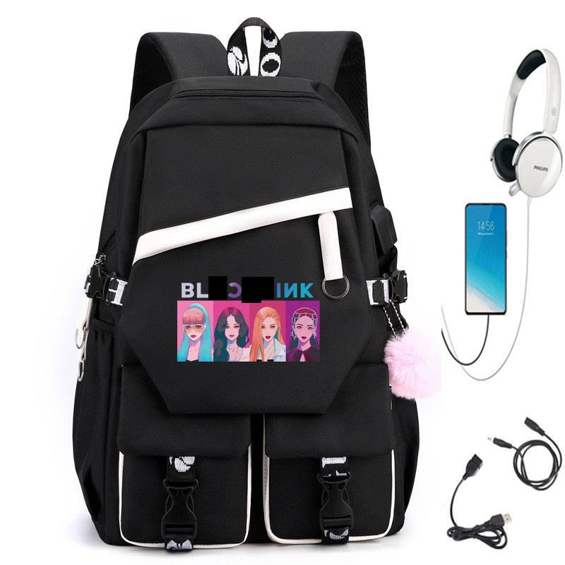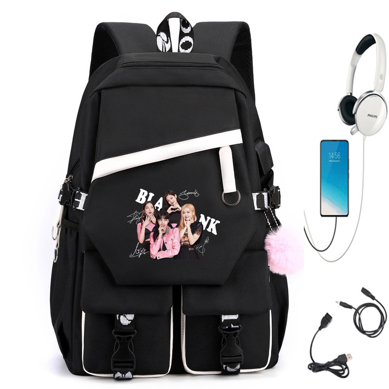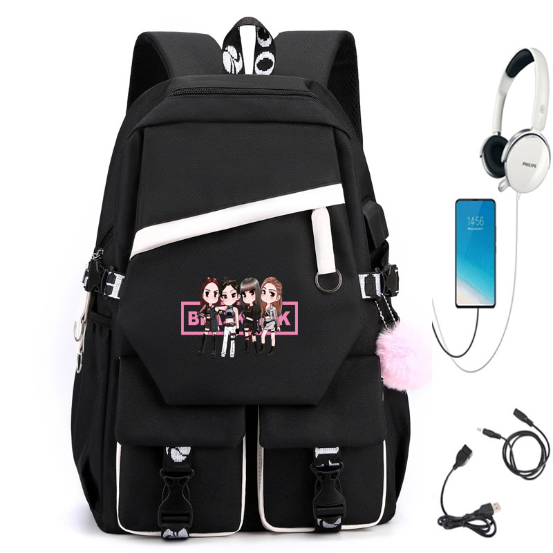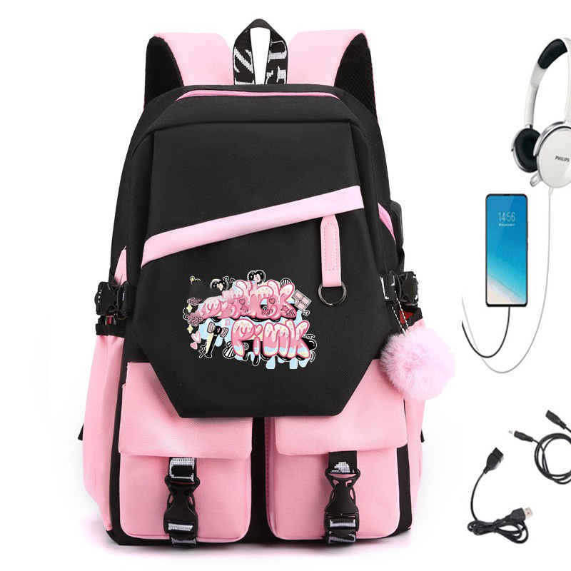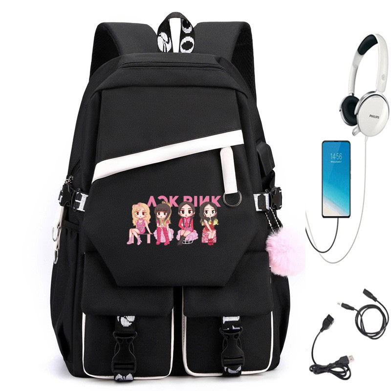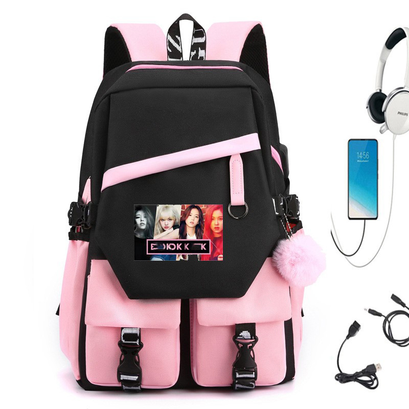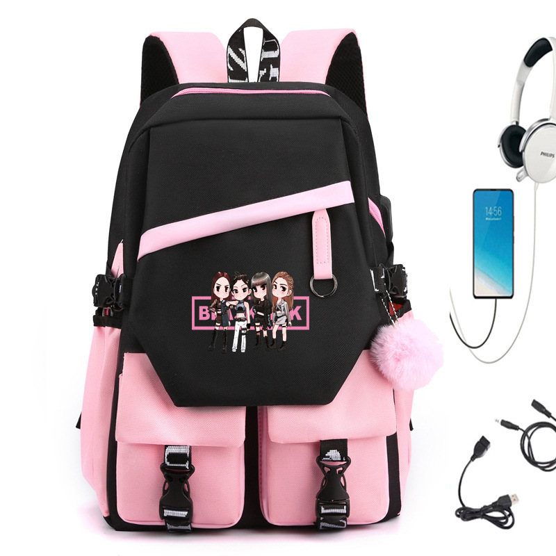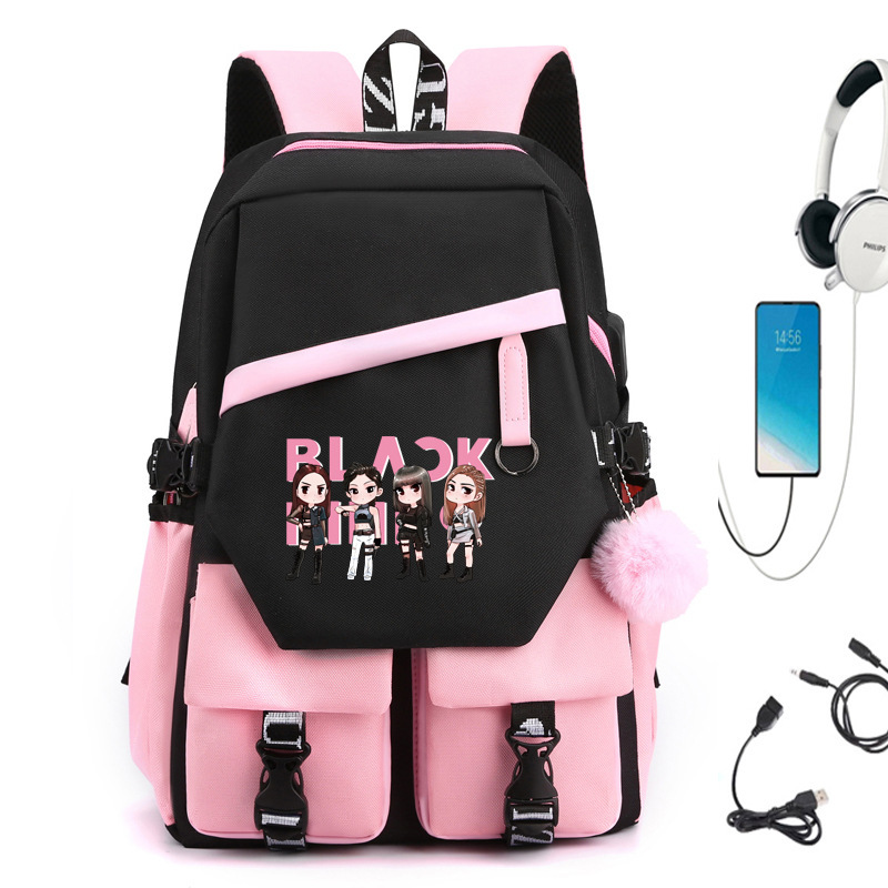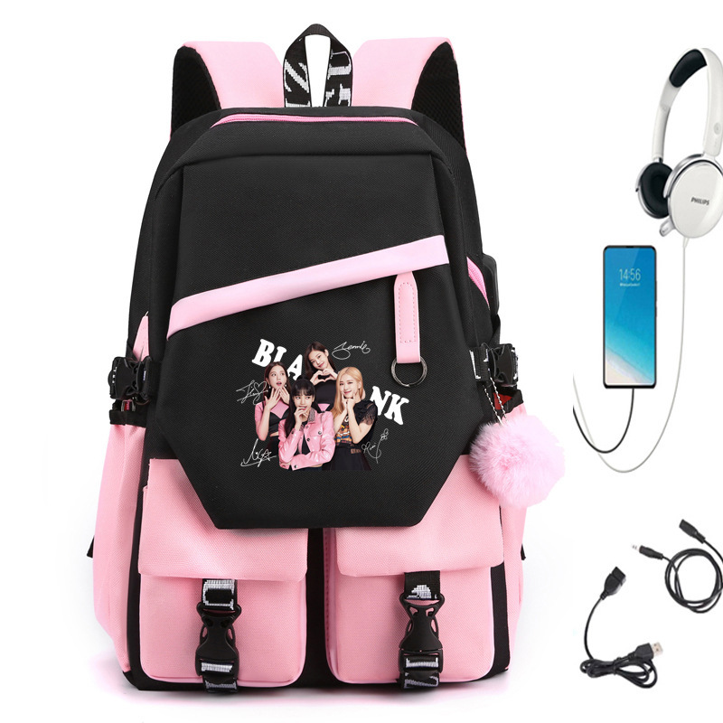 새로운 충전 BLACKPINK 여성 배낭 학생 책가방 야외 여행 배낭 스포츠 가방 일본과 한국식스토어 가기