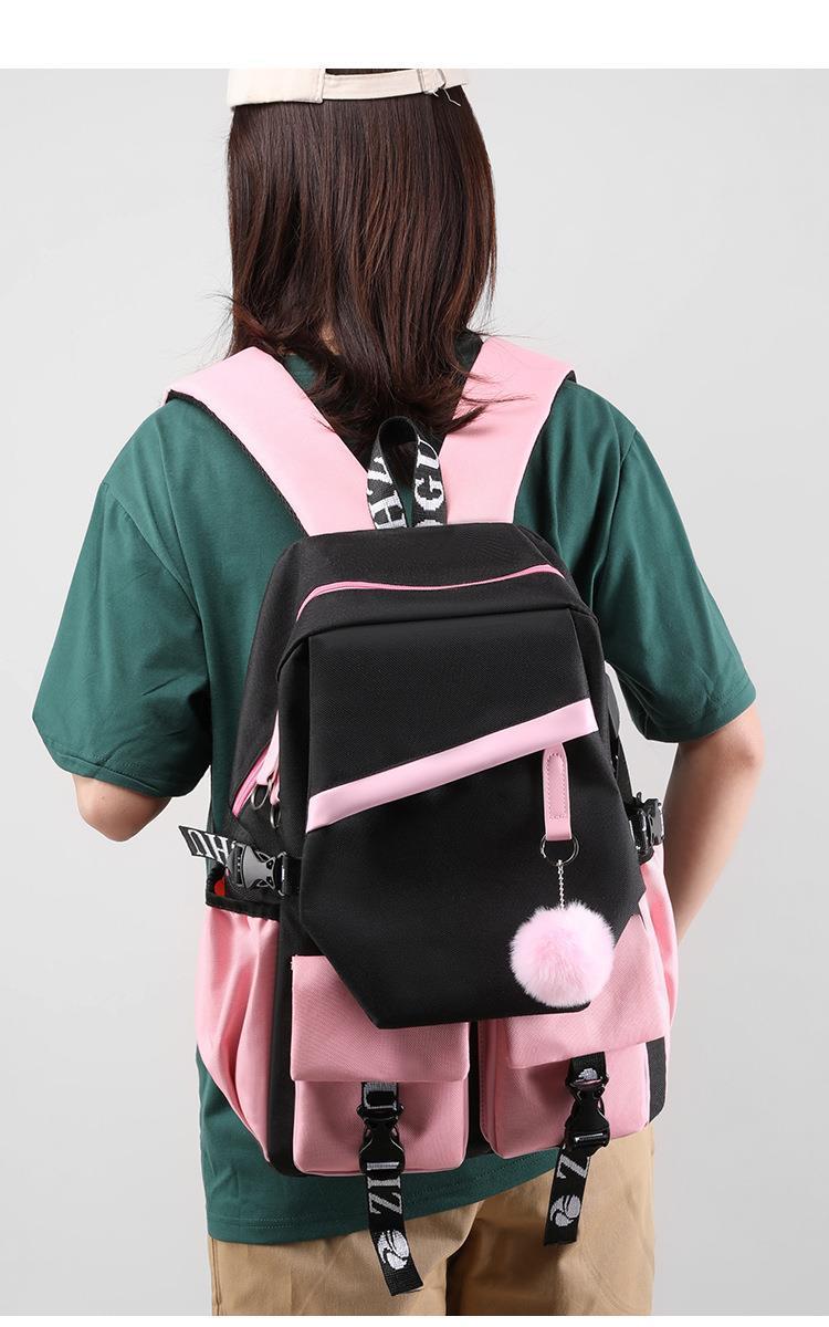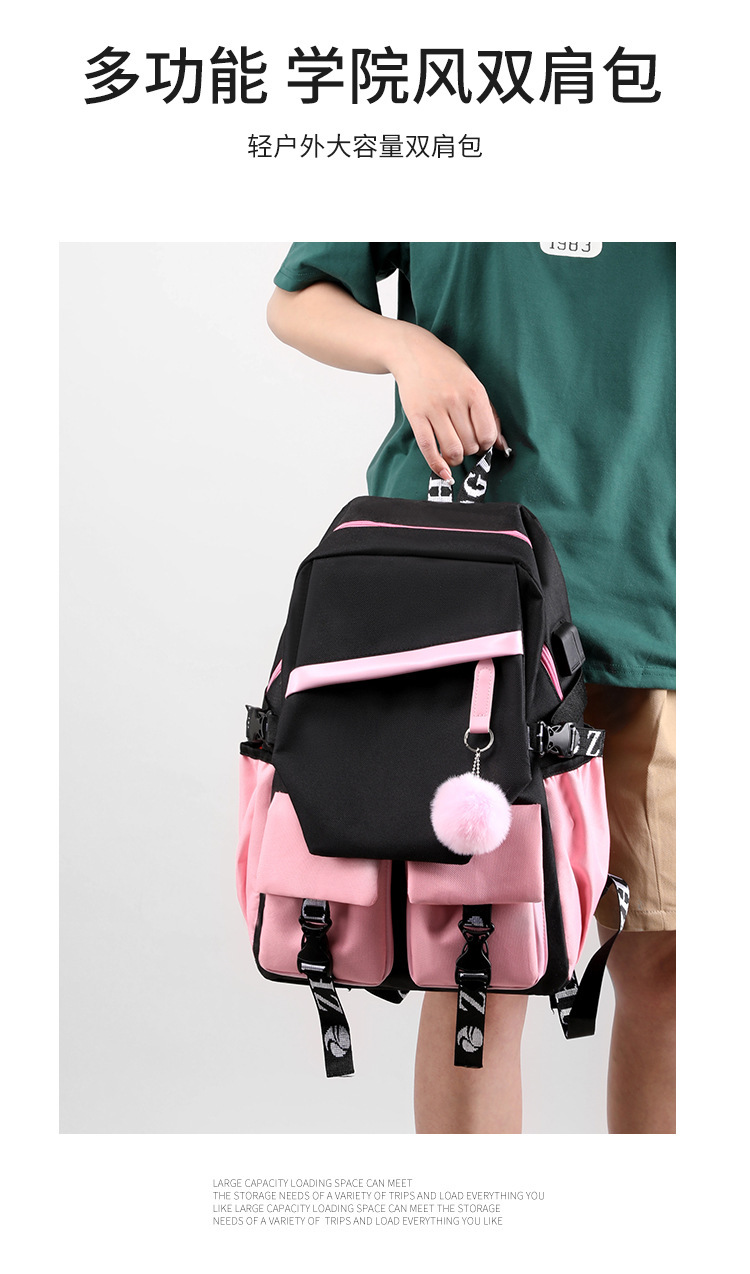 새로운 충전 BLACKPINK 여성 배낭 학생 책가방 야외 여행 배낭 스포츠 가방 일본과 한국식