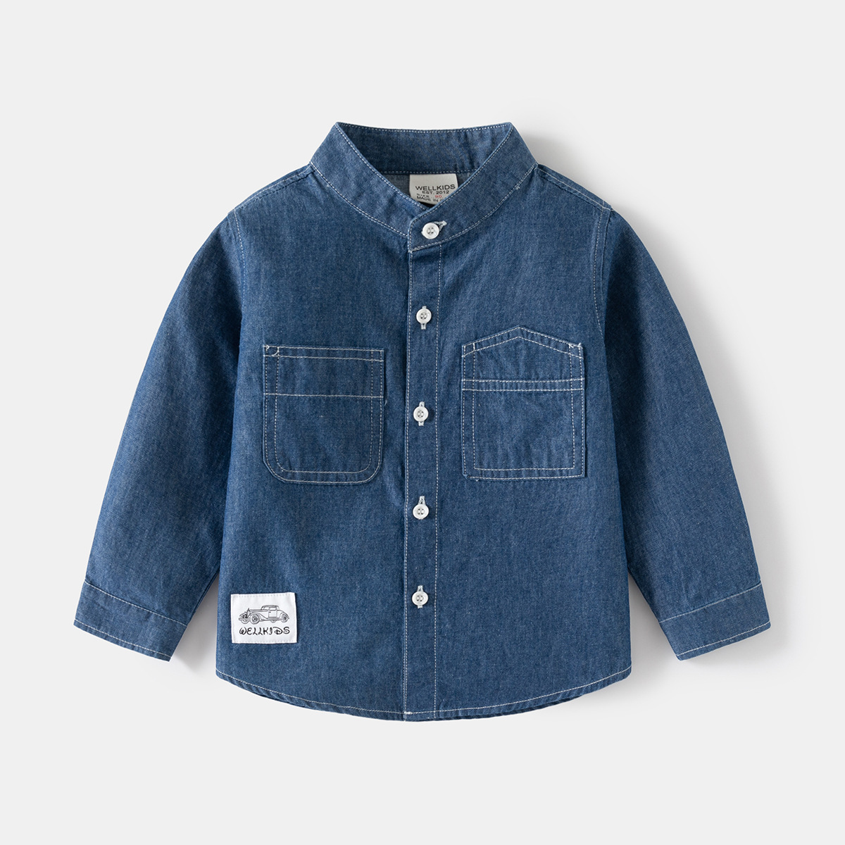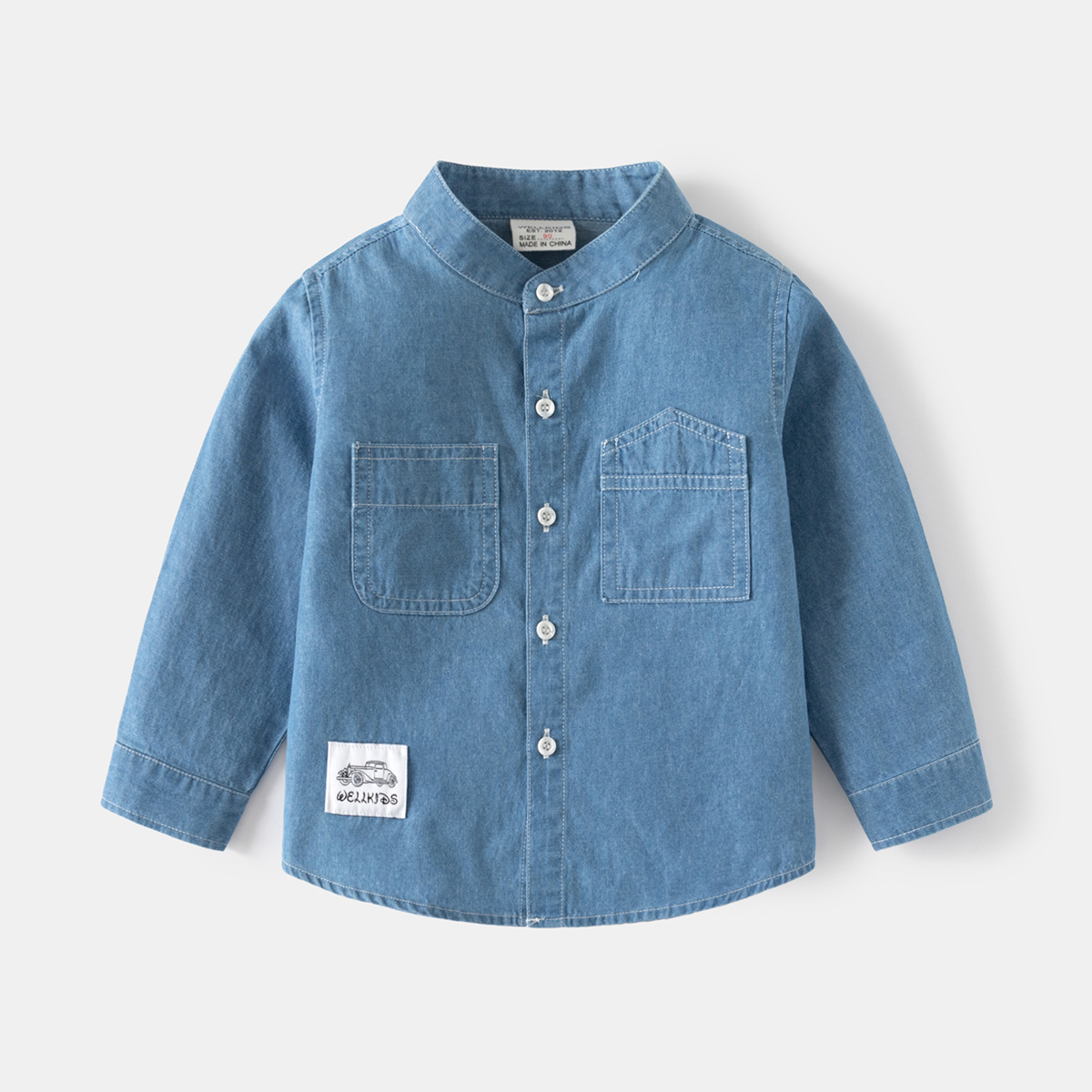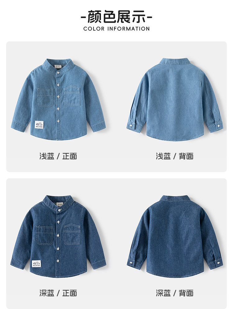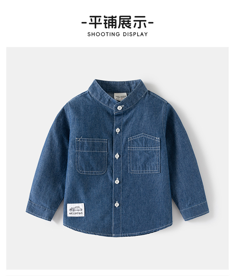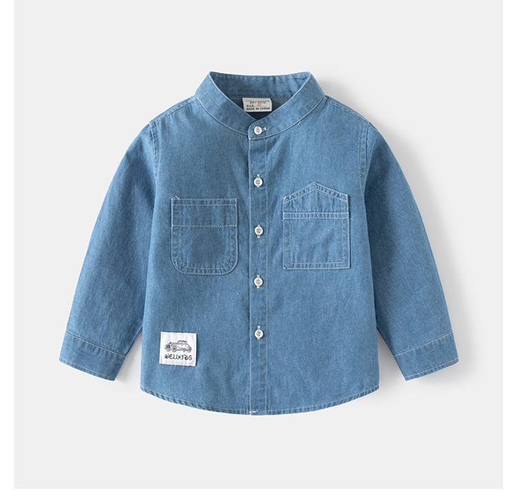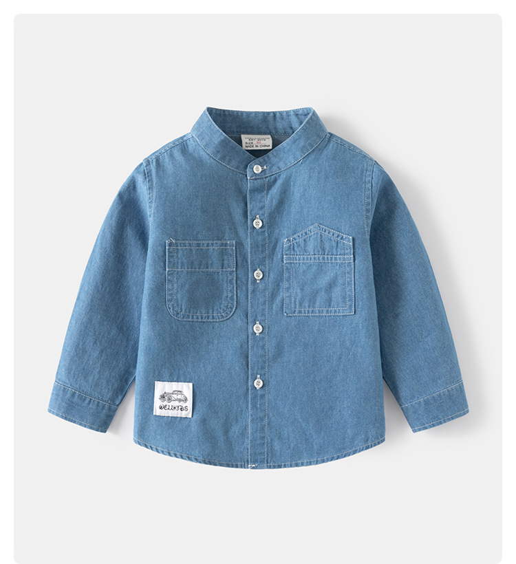소년 데님 셔츠 코트 봄과 가을 새로운 어린이 스탠드 칼라 잘 생긴 아동복 캐주얼 카디건 아동복 도매스토어 가기
