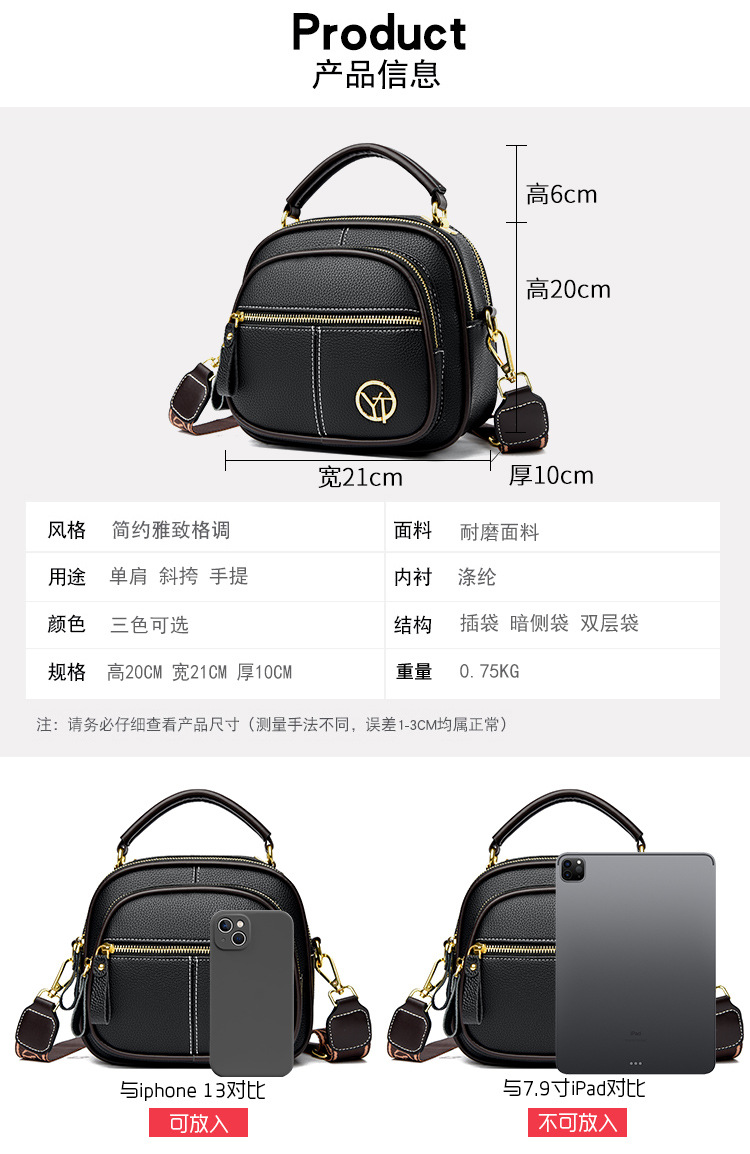 공장 직접 판매 새로운 스타일 가죽 휴대용 어깨 메신저 가방 넓은 어깨 끈 다층 여성용 가방 사과 가방 간단한 올 매치스토어 가기