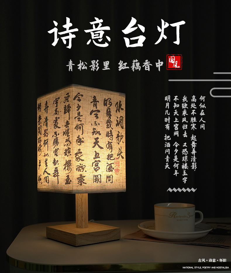 중국 스타일 서예 테이블 램프 침실 침실 램프 스터디 룸 홈스테이 분위기 라이트 티 하우스 골동품 나이트 라이트 선스토어 가기