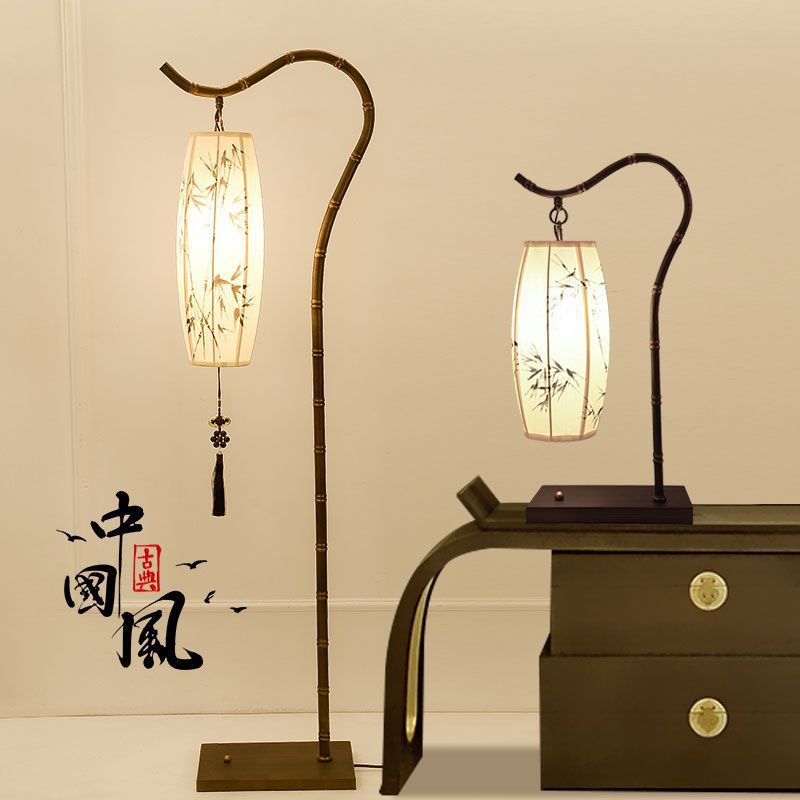 레트로 젠 매력 새로운 중국 스타일 대나무 수직 바닥 램프 중국 스타일 간단한 티 룸 레스토랑 연구 눈 보호 램프스토어 가기