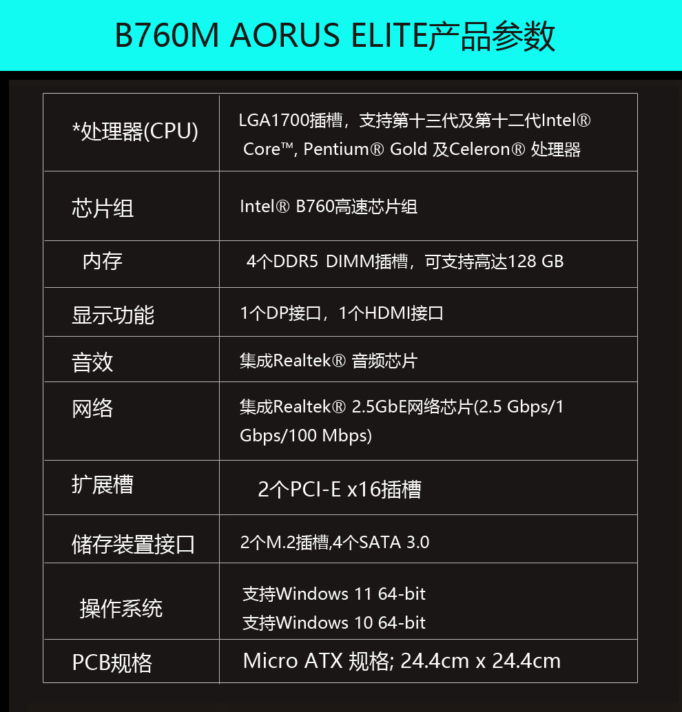 12/13 세대 CPU 13400F 에 적합한 Gigabyte B760M AORUS ELITE DDR5 컴퓨터 게임 마더 보드