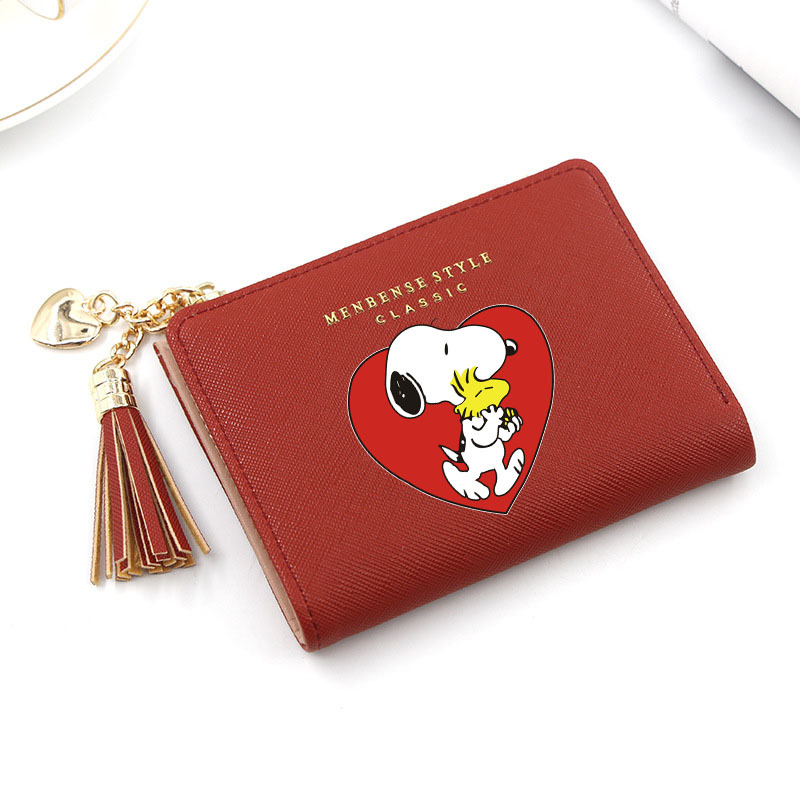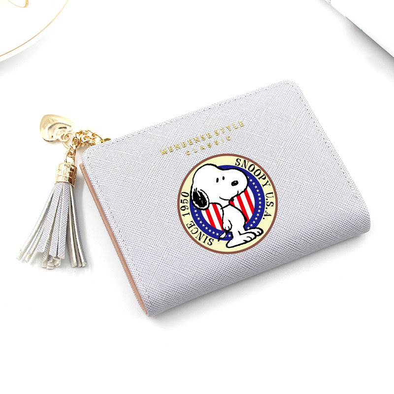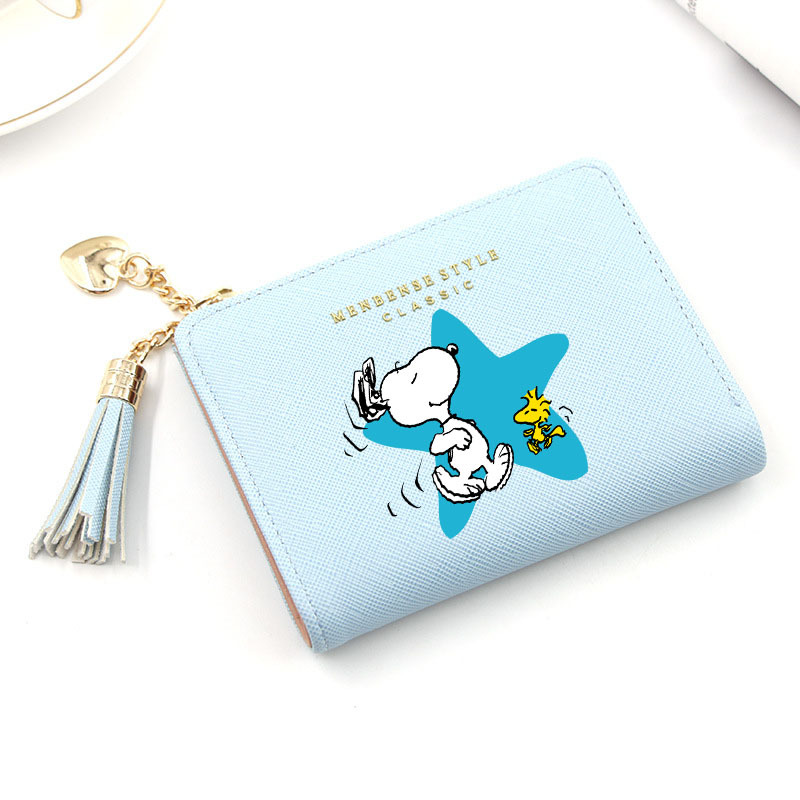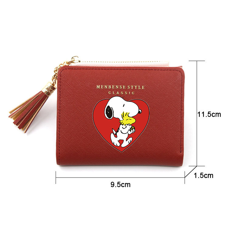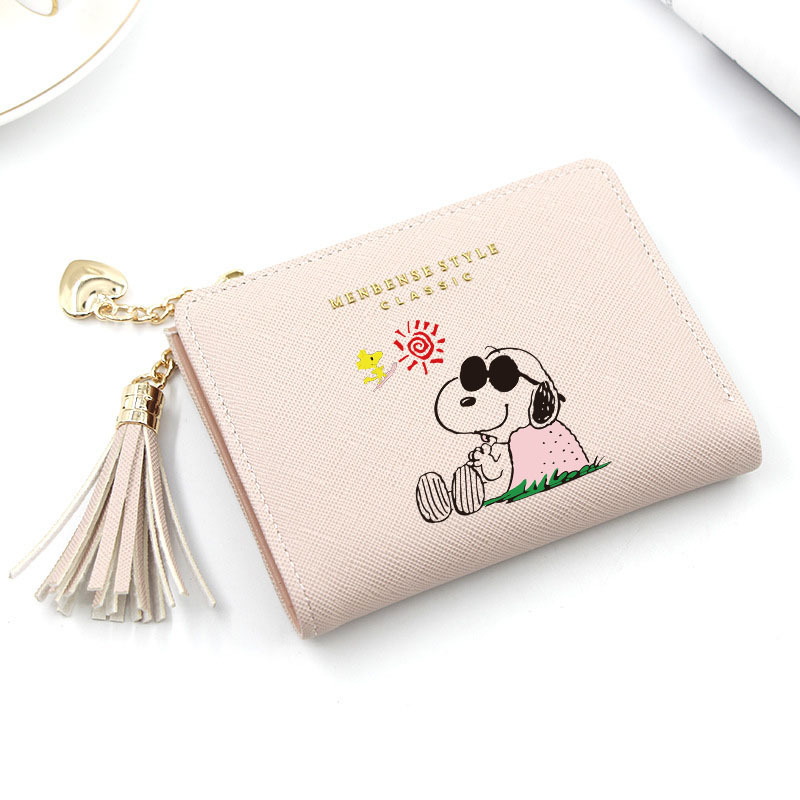 애니메이션 주변 스누피 지퍼 지갑 술 지갑 절반 배 짧은 카드 홀더 코인 지갑