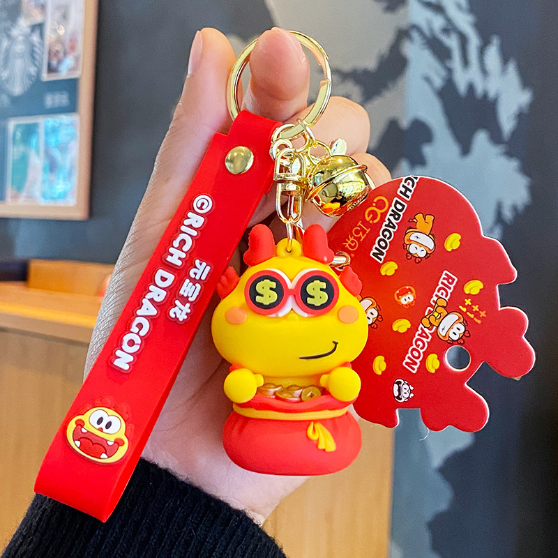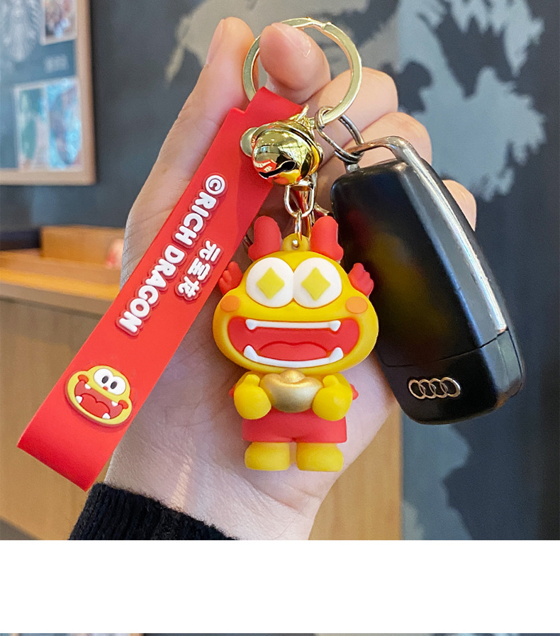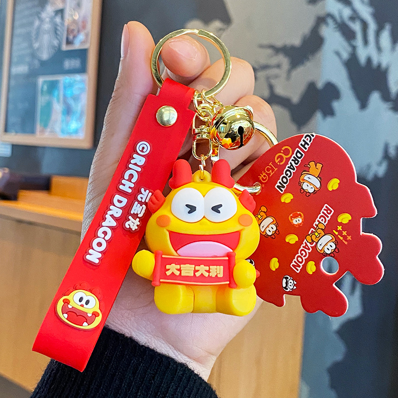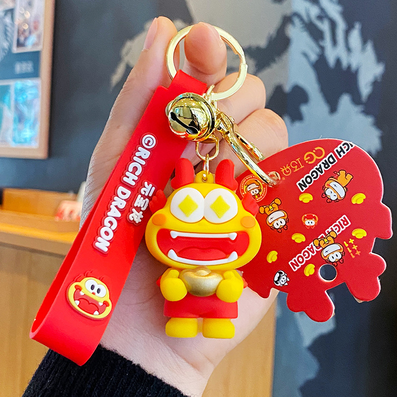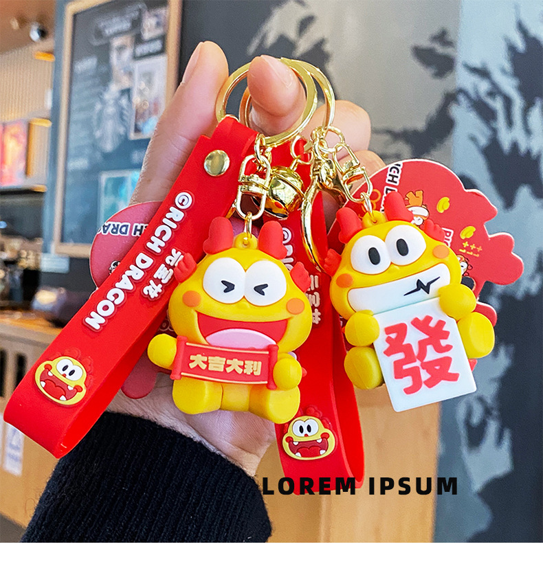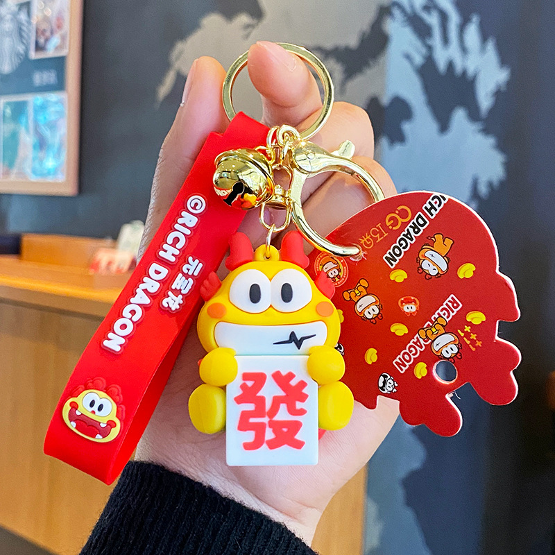 2024 드래곤 년 마스코트 정품 드래곤 키 체인 절묘한 귀여운 책가방 장식품 남성과 여성의 자동차 열쇠 고리스토어 가기