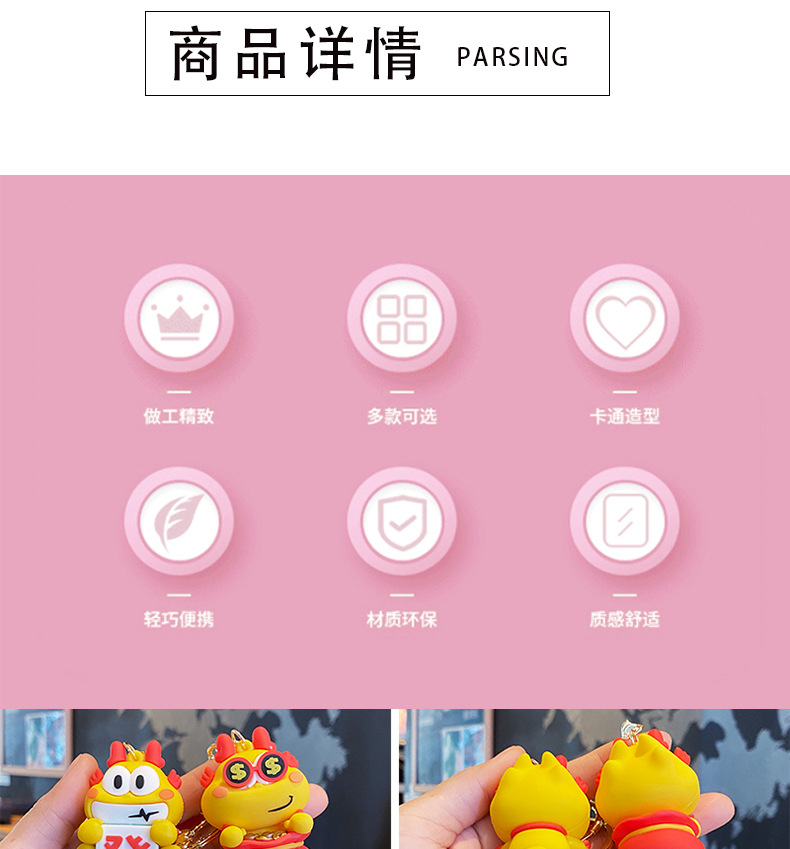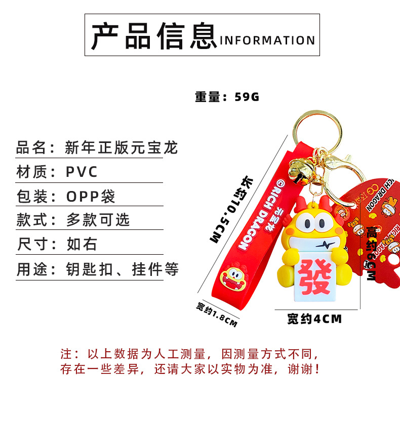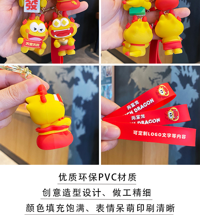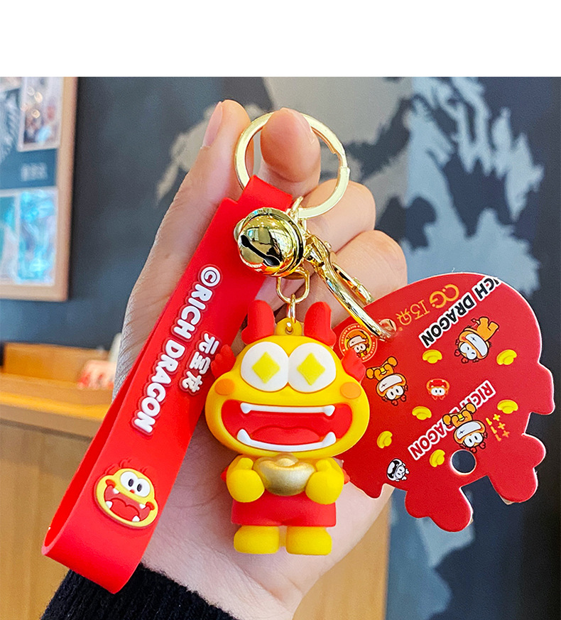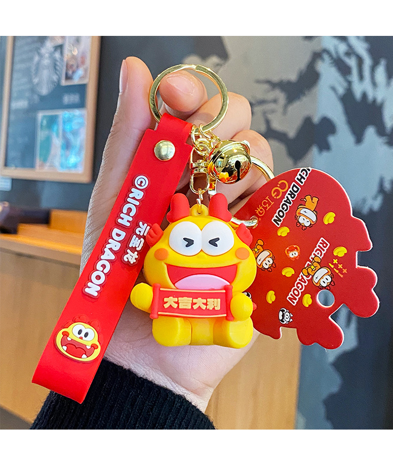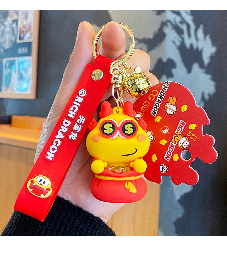 2024 드래곤 년 마스코트 정품 드래곤 키 체인 절묘한 귀여운 책가방 장식품 남성과 여성의 자동차 열쇠 고리스토어 가기