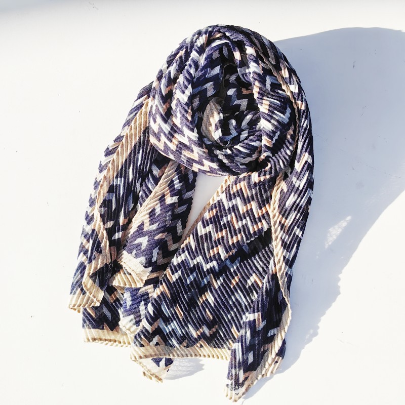한국식 새 예술적 올매치 구겨진 스카프 여자 파란색과 흰색 줄무늬 플리츠 발리 원사 따뜻한 목도리 스카프스토어 가기