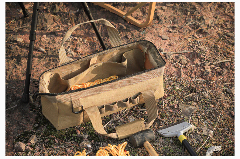 야외 캠프 네일 백 캠핑 그라운드 네일 스토리지 백 다기능 휴대용 텐트 캐노피 바람 로프 망치 액세서리 키트