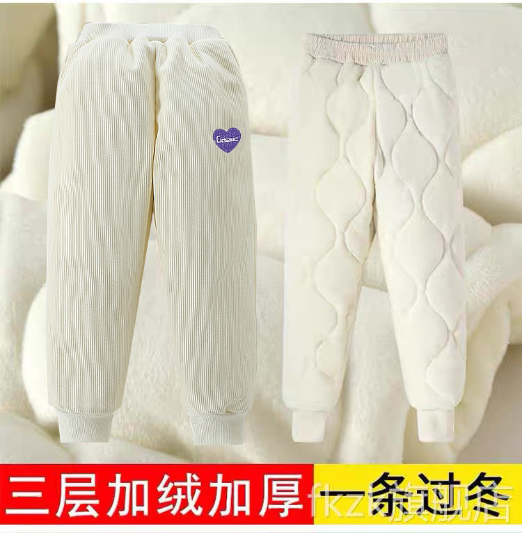여자 겨울 옷 기모 면화 바지 어린이 3 층 퀼트 두꺼운 겨울 따뜻한 겉옷 스포츠 바지 바지스토어 가기