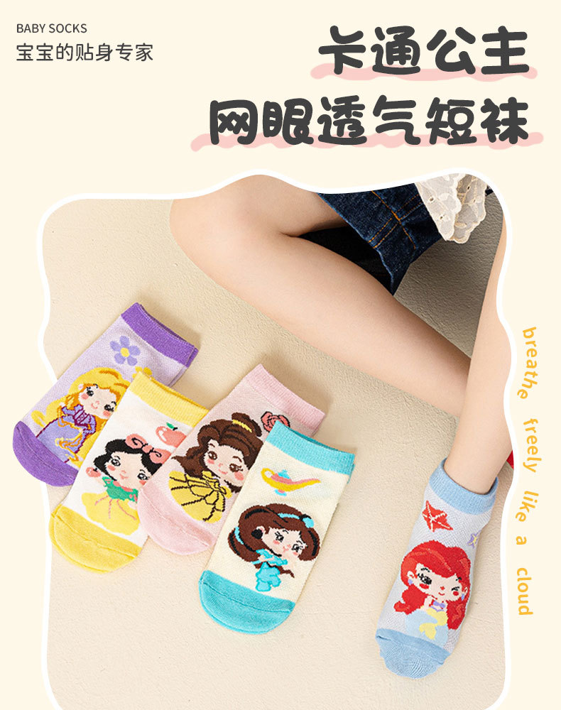 국경 봄과 여름 새로운 만화 소녀 메쉬 양말 얇은 통기성 어린이 양말 귀여운 중대형 어린이 양말 도매