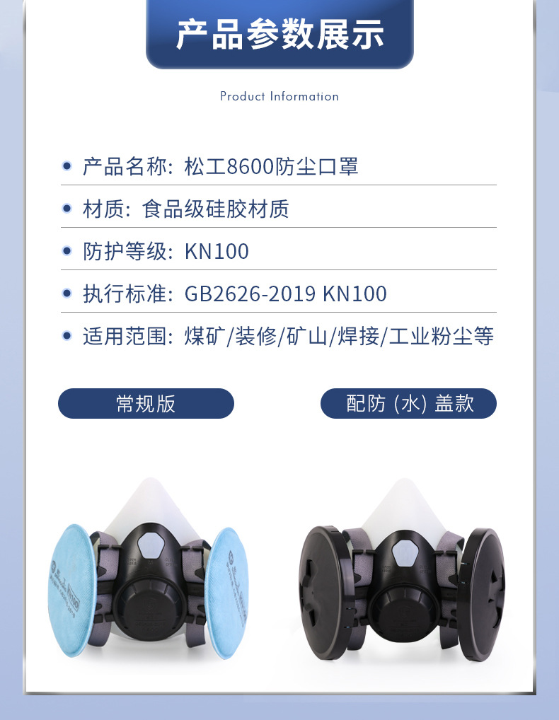 송공 8600 실리콘 마스크 먼지 마스크 반대로 산업 먼지 KN100 필터 면 전기 용접 연기 탄광 시멘트