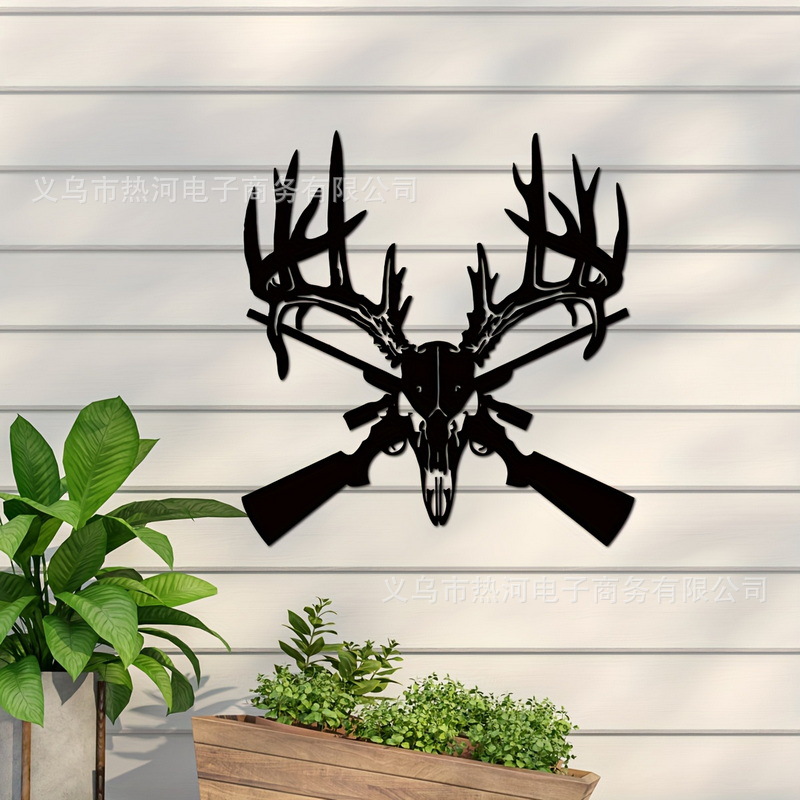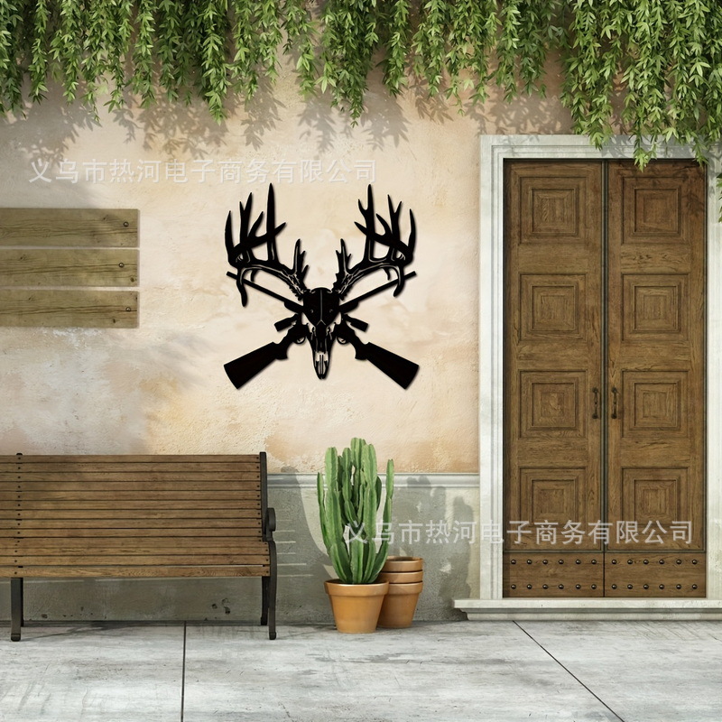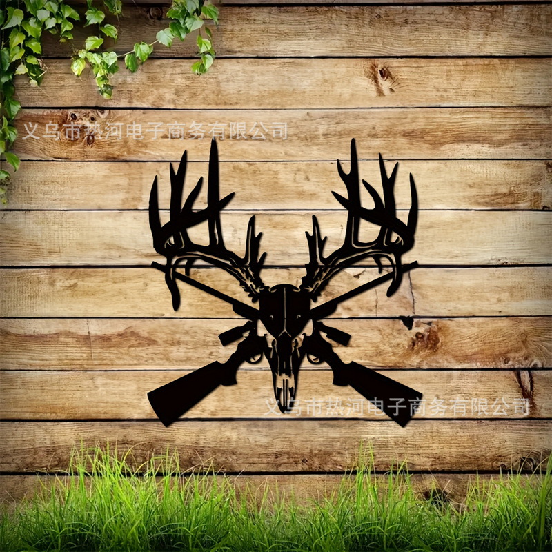 금속 사슴 두개골과 총 로고 금속 남자 구멍 로고 차고 로고 금속 사슴 해골스토어 가기