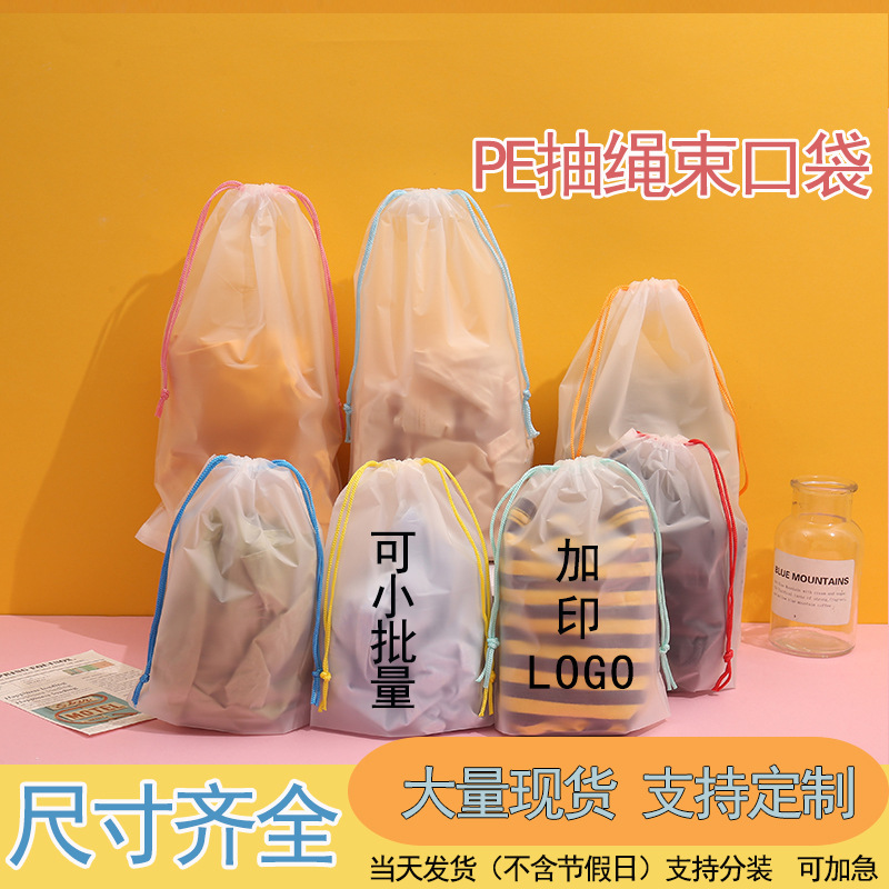 프로스트 블랭크 드로우 스트링 저장 가방 플라스틱 반투명 PE 의류 포장 가방 멀티 컬러 서랍 가방