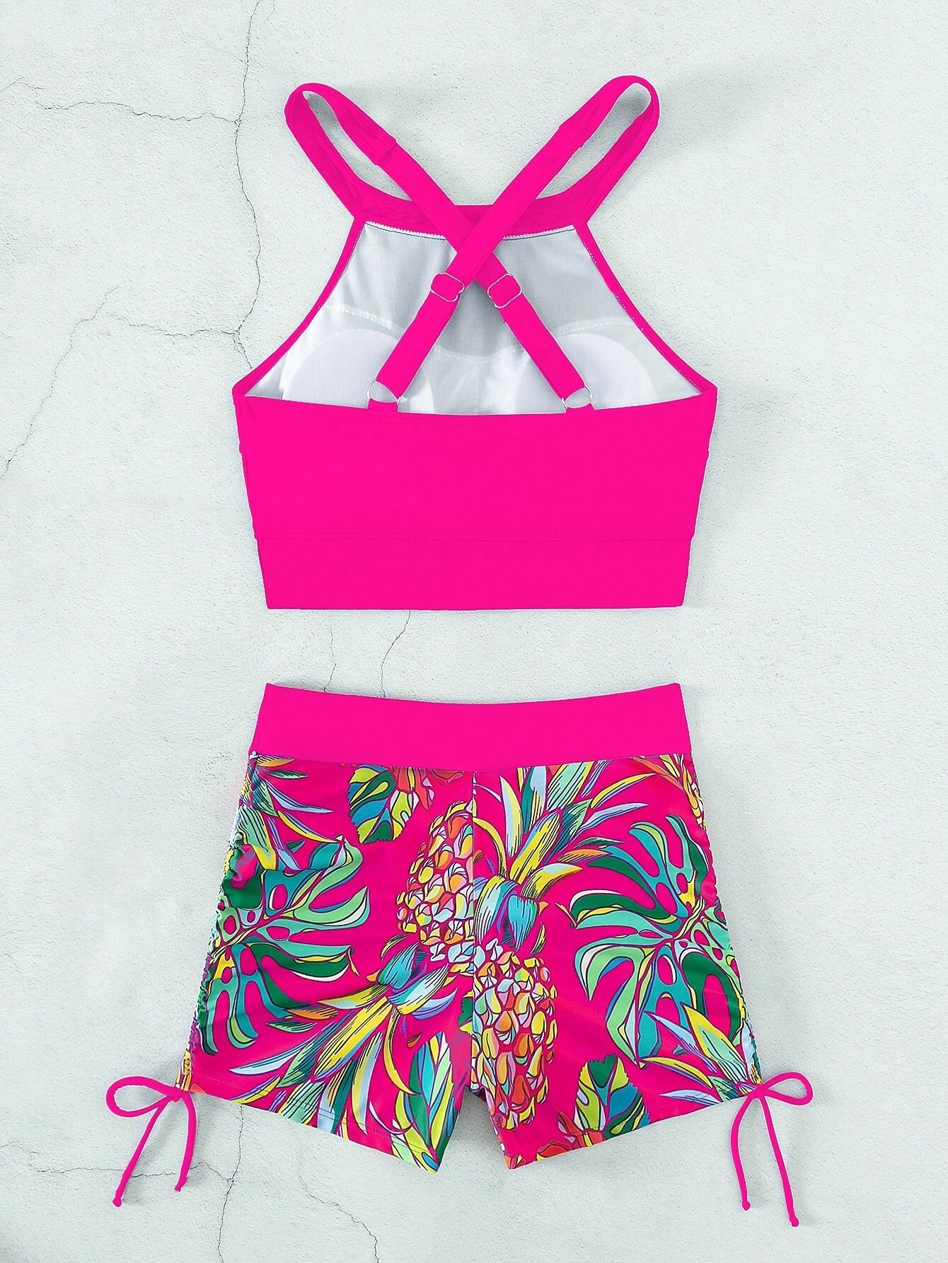 2024 새로운 유럽과 미국의 비키니 수영복 여성의 섹시한 단색 인쇄 스플릿 하이 허리 배꼽 커버 온천 수영복 여성스토어 가기