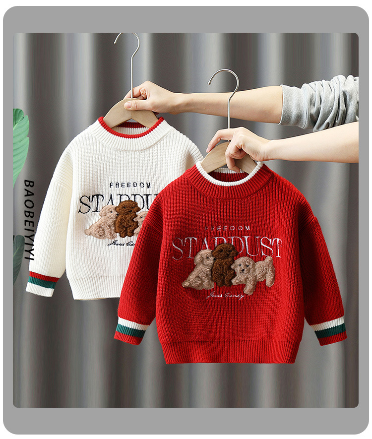 4735 남아용 가을 겨울 스웨터, 중소 아동용 두꺼운 풀오버 상의, 어린이 겨울 만화 니트웨어 2025 트렌드스토어 가기