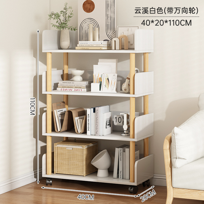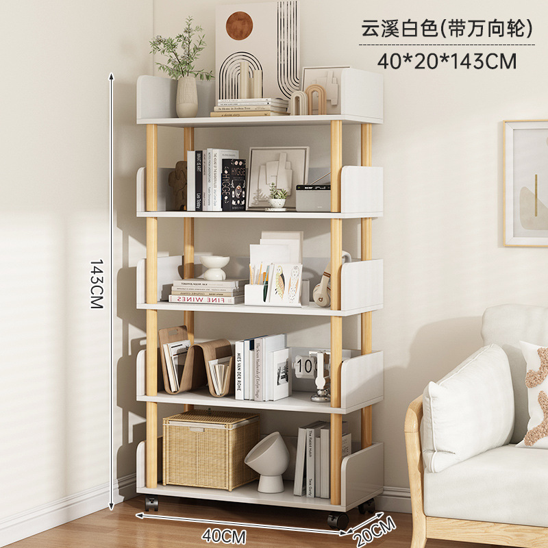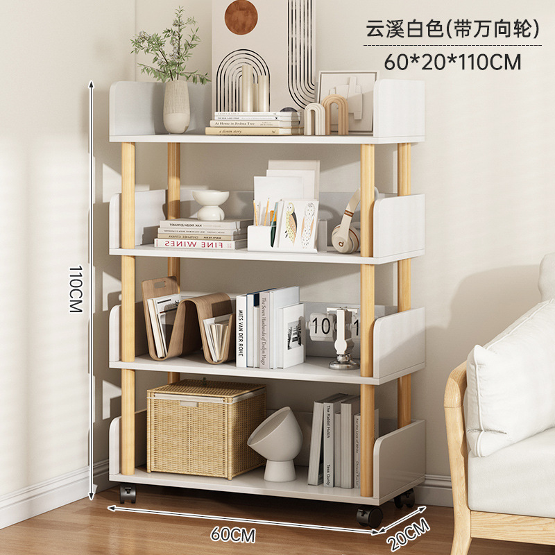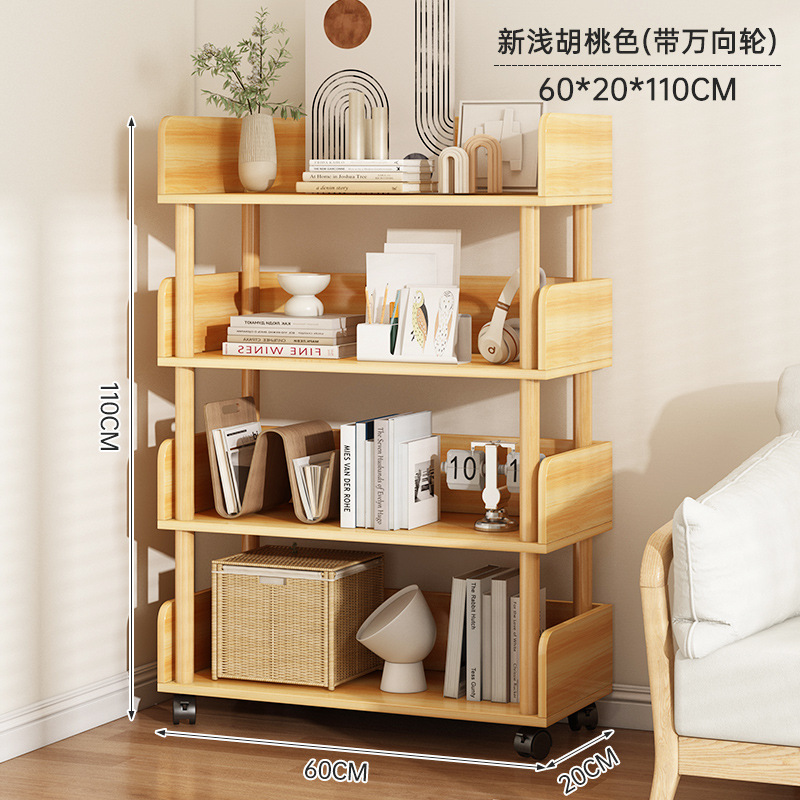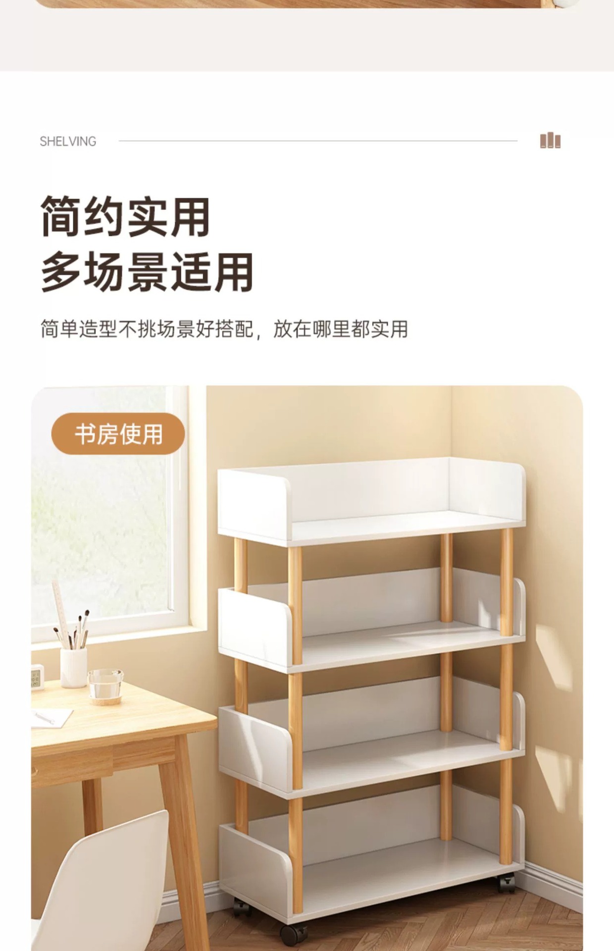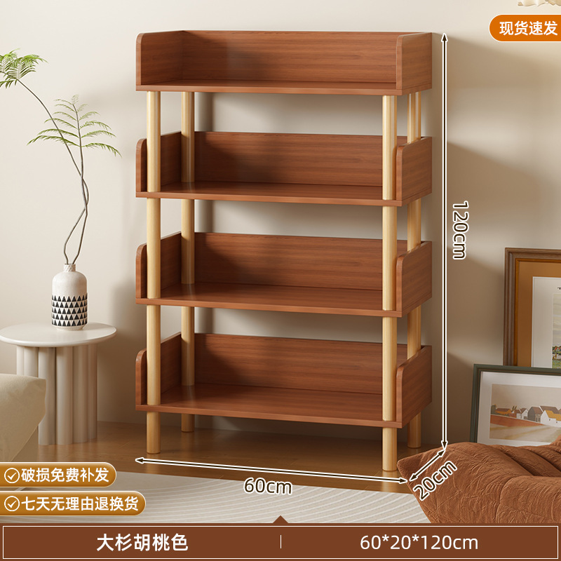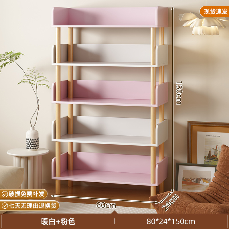 简易书架落地多层置物架ins风靠墙收纳架实木腿阅读架玩具货架子