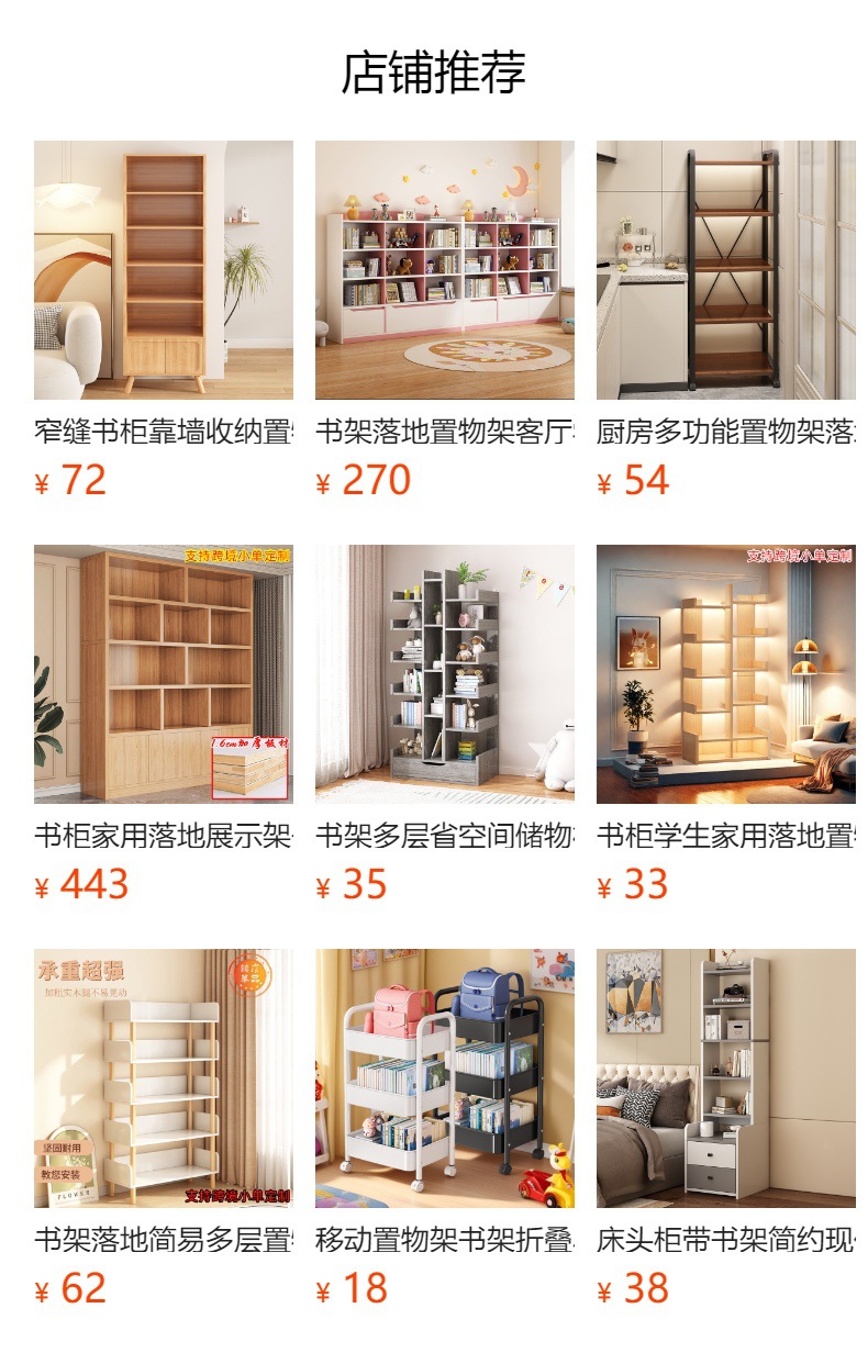 책꽂이, 바닥형 간편 다층 수납선반, 인스 스타일 벽걸이 수납선반, 원목 다리 독서대, 장난감 선반스토어 가기