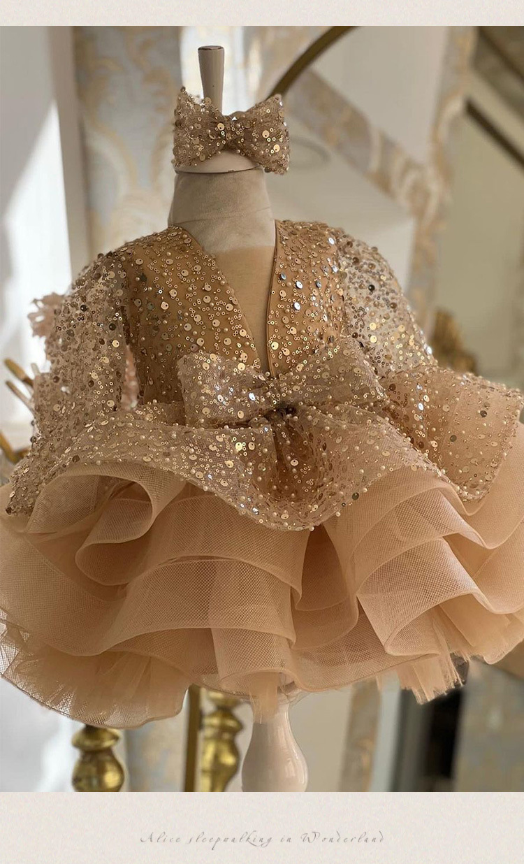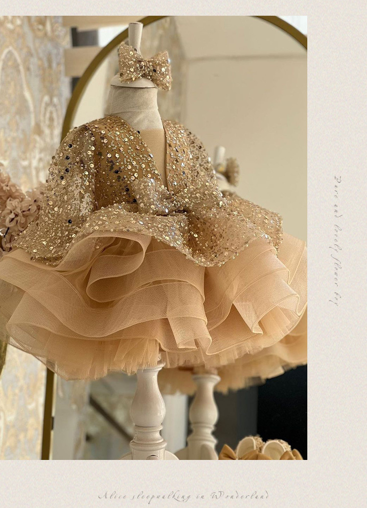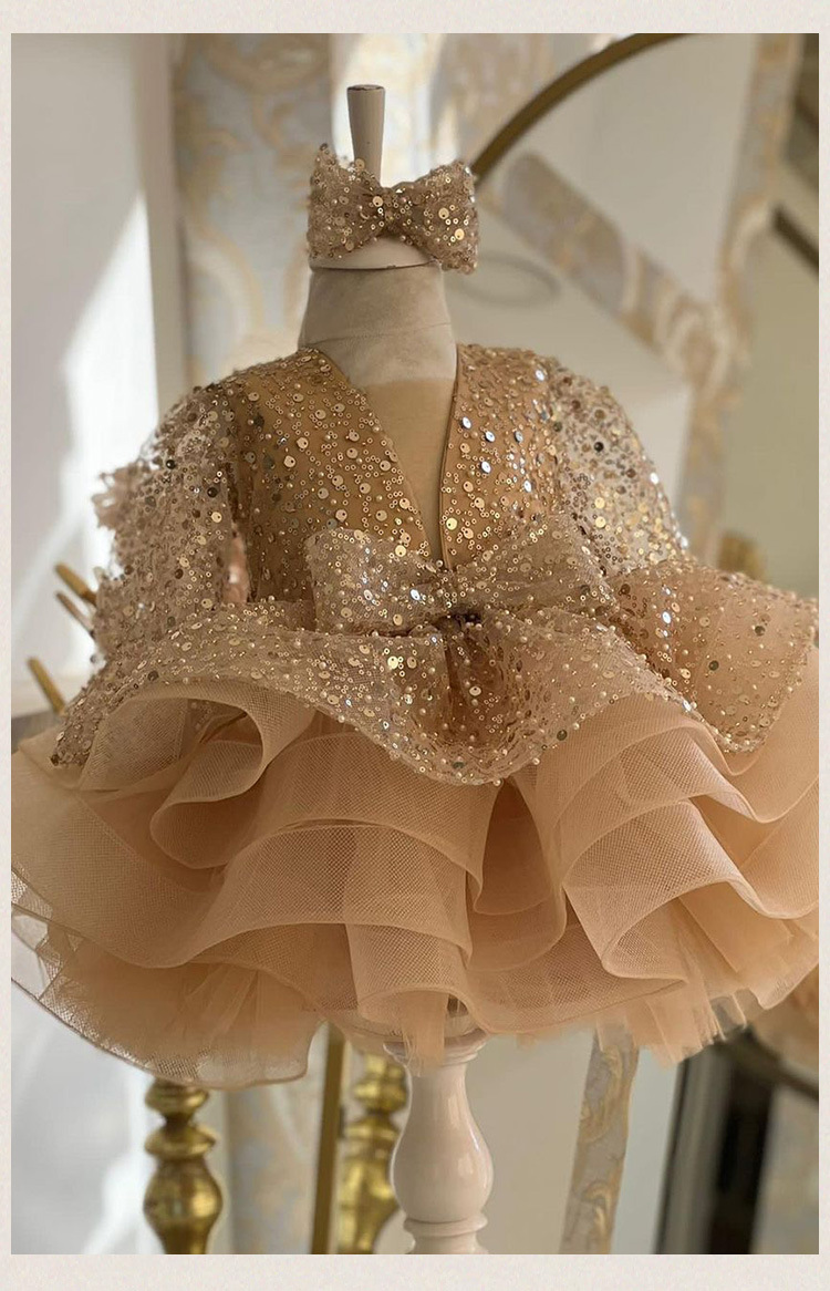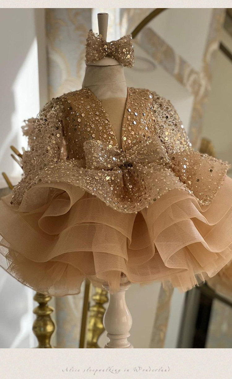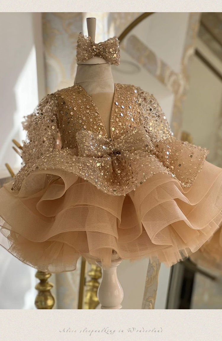 어린이 드레스 스팽글 2025 신상 긴팔 여아 퍼프 스커트 피아노 쇼 의상 해외 도매스토어 가기