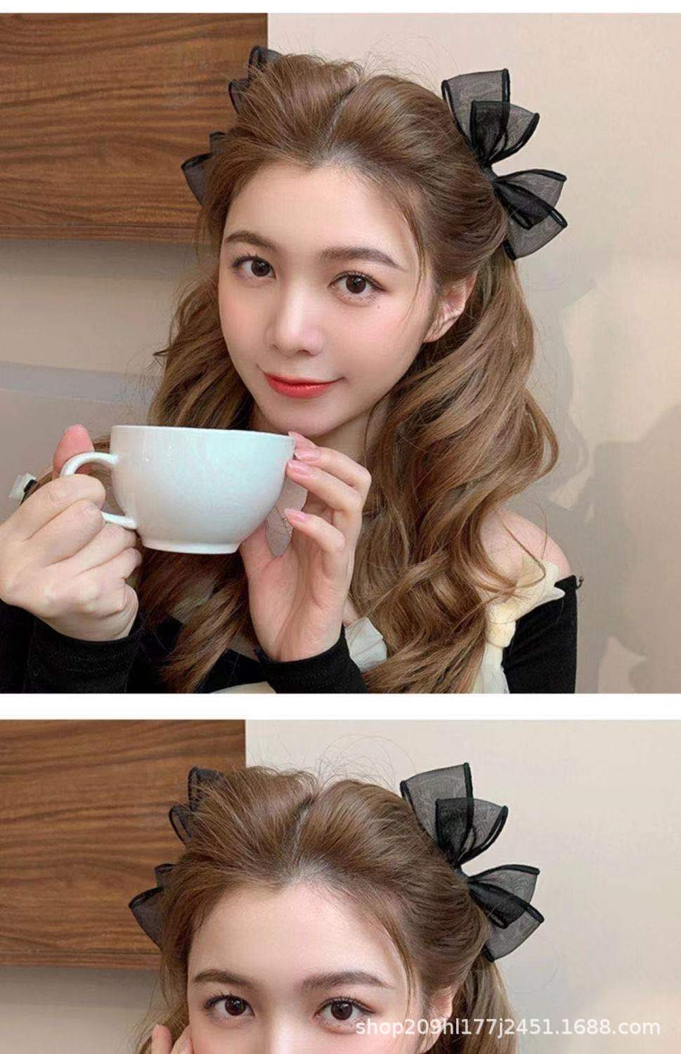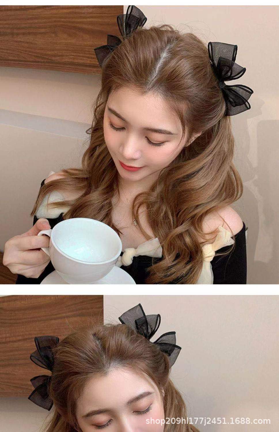 • 더블 레이어 활 사이드 클립 [organza-Black]]