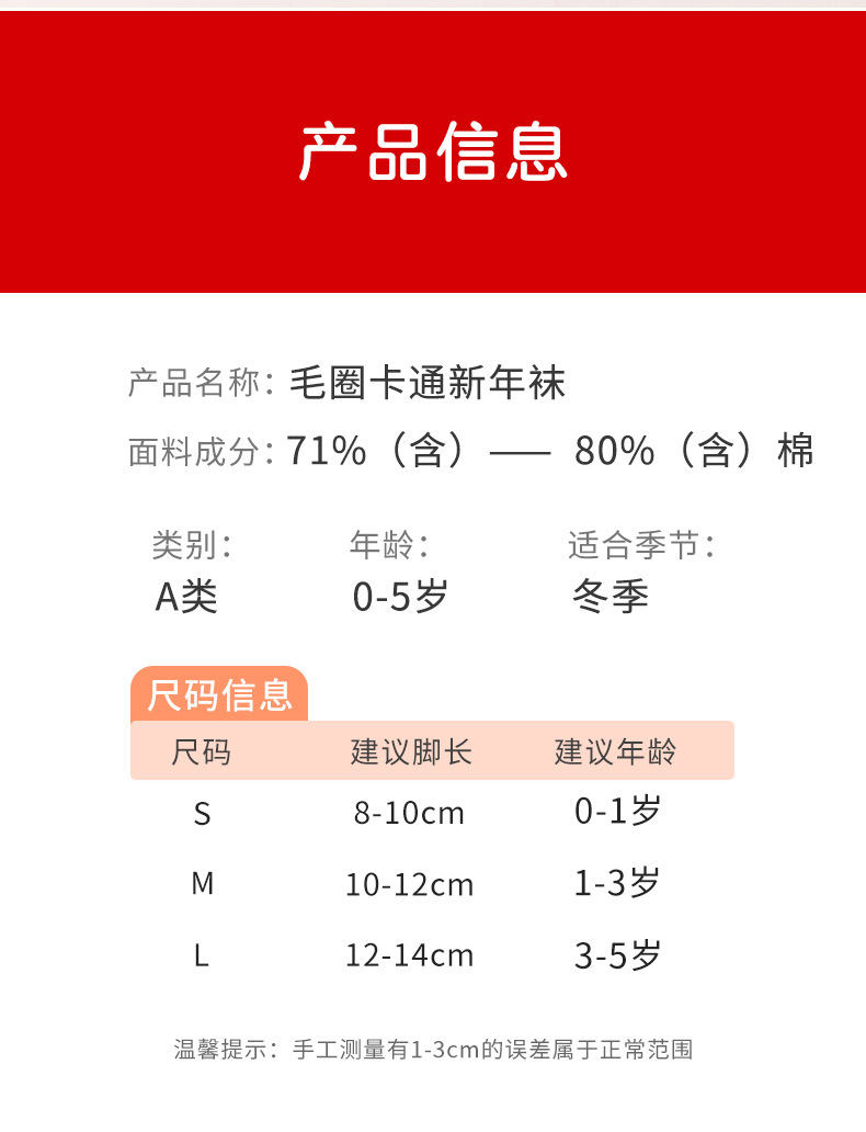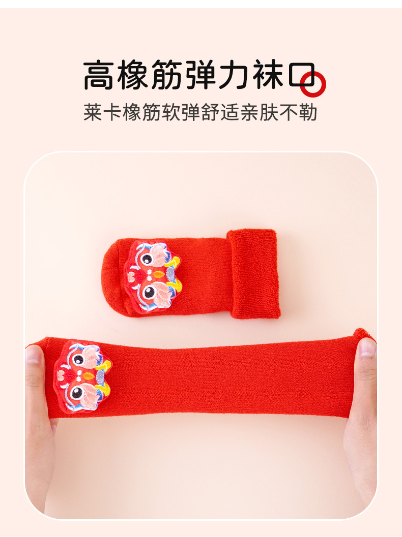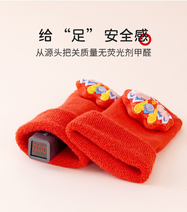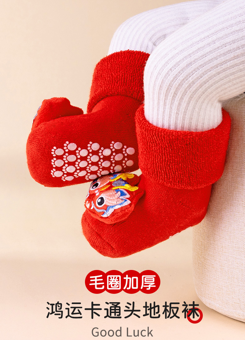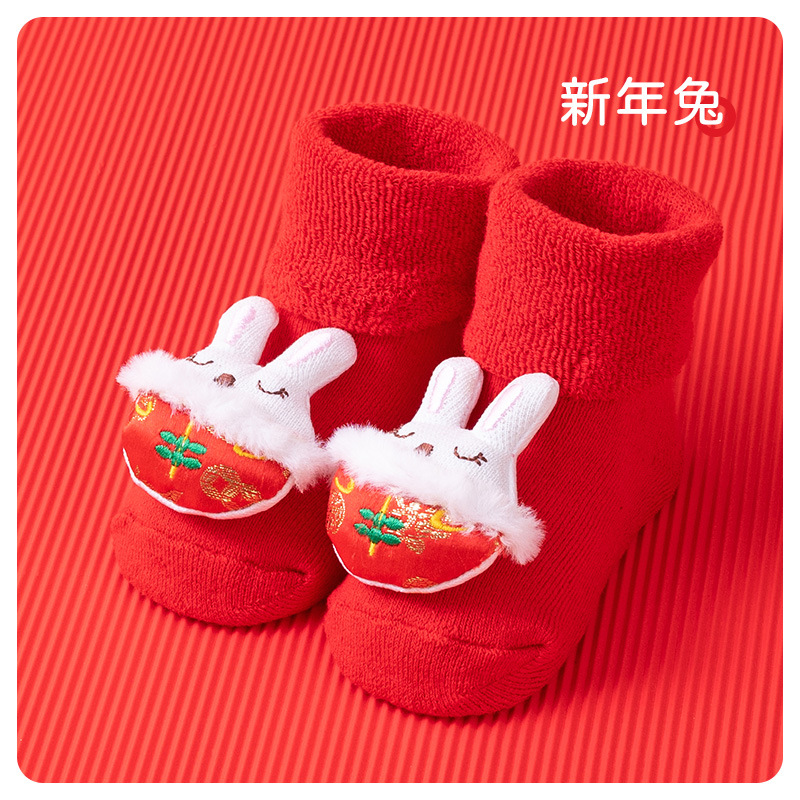 • 새해 테리 바닥 양말 - 레드 Xianglong