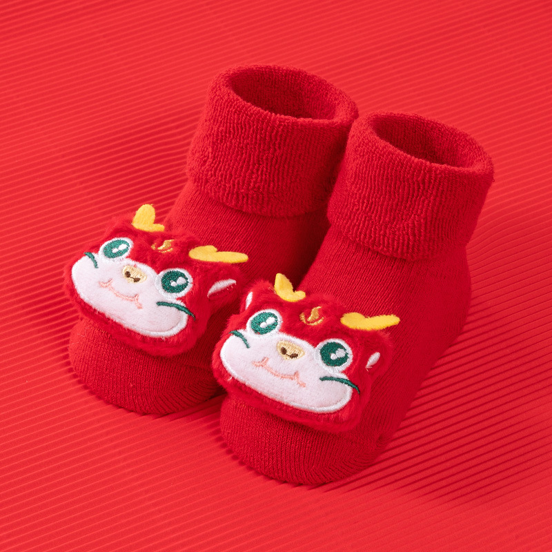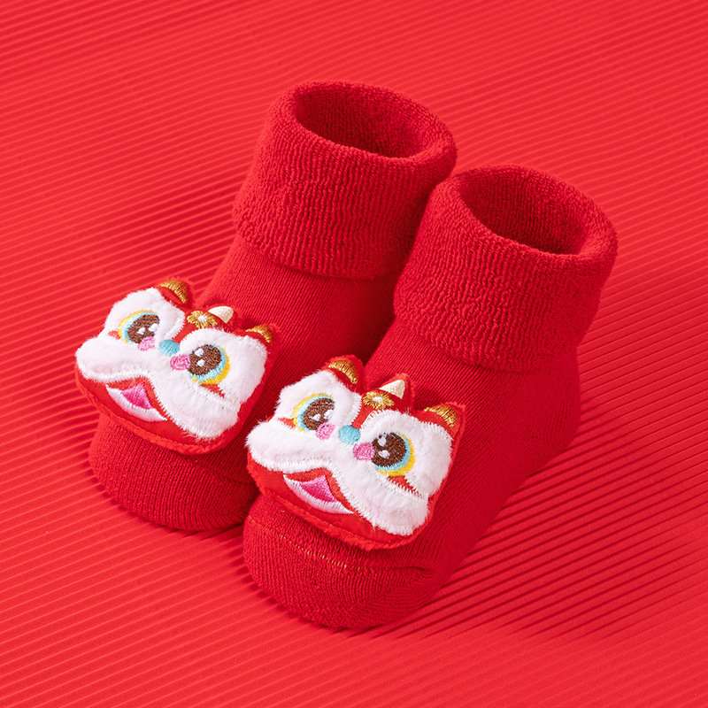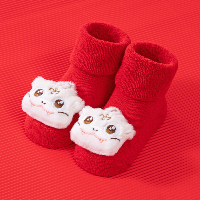 • 새해 테리 바닥 양말 - 붉은 새해 짐승