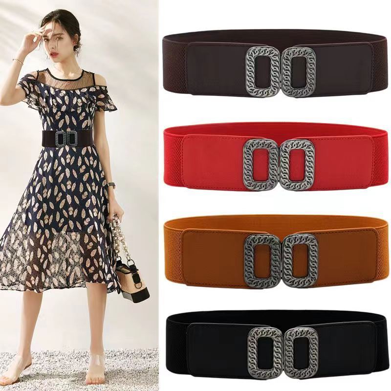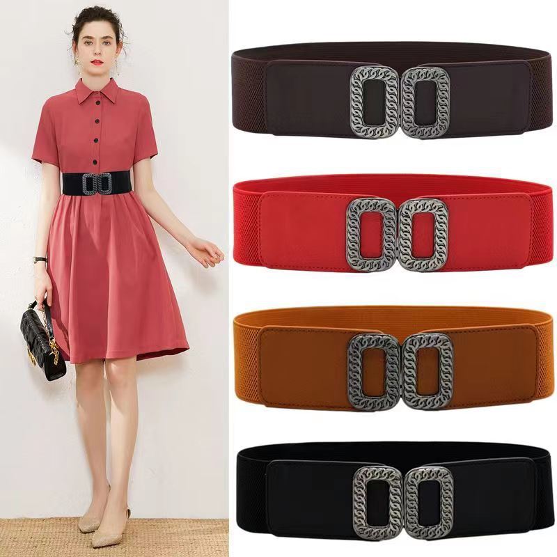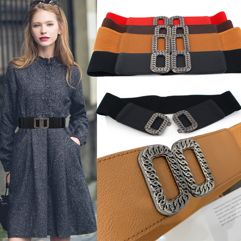 빈티지 와이드 탄성 벨트 여성 패션 올 매치 원피스 장식 다운 재킷 스웨터 허리 커버 한국 허리 블랙스토어 가기