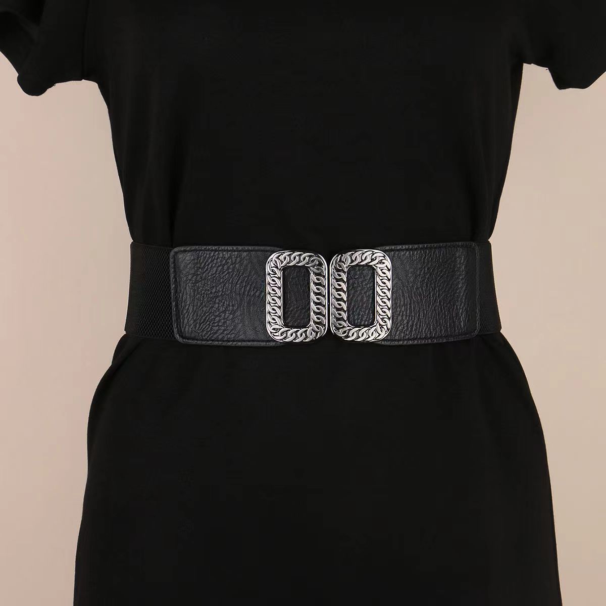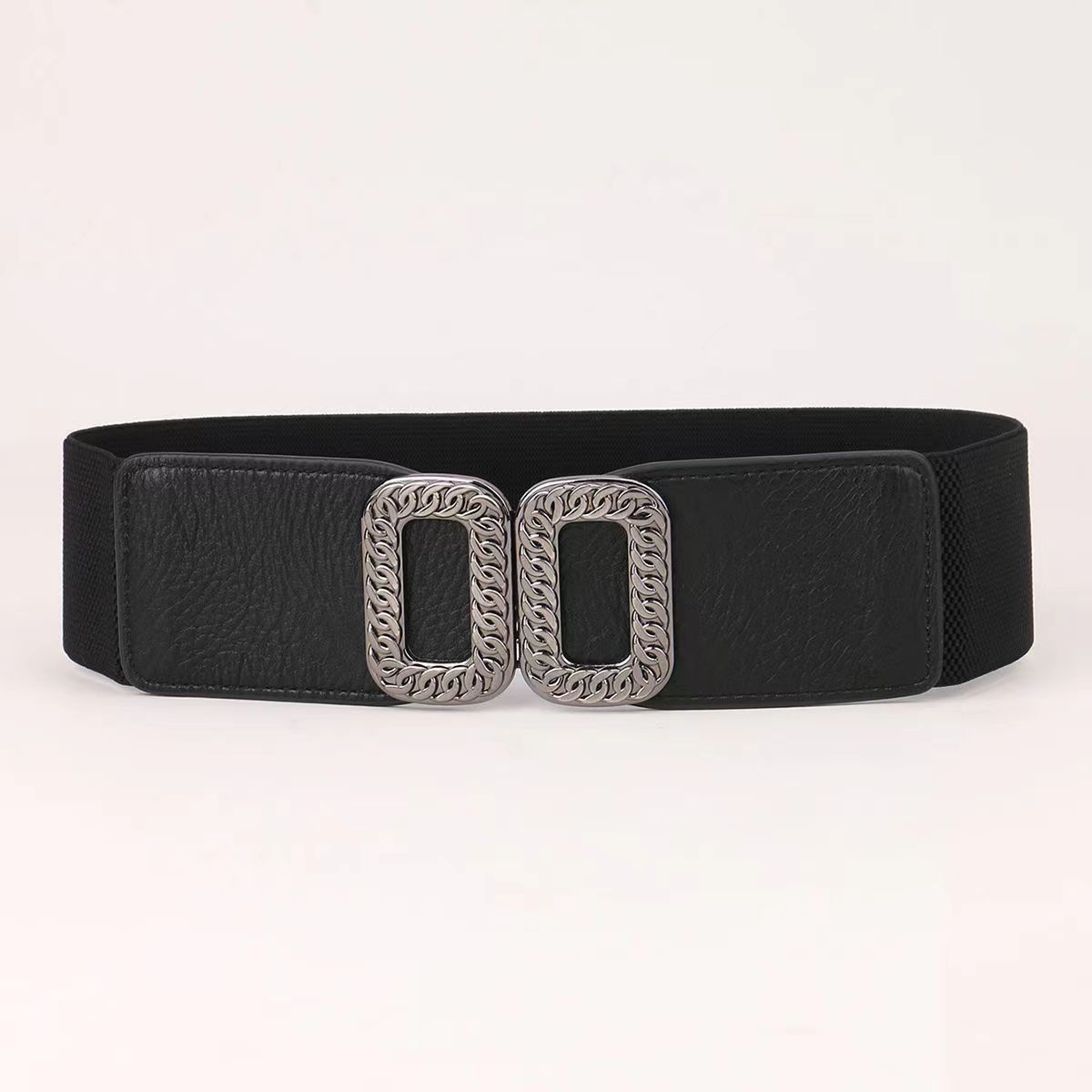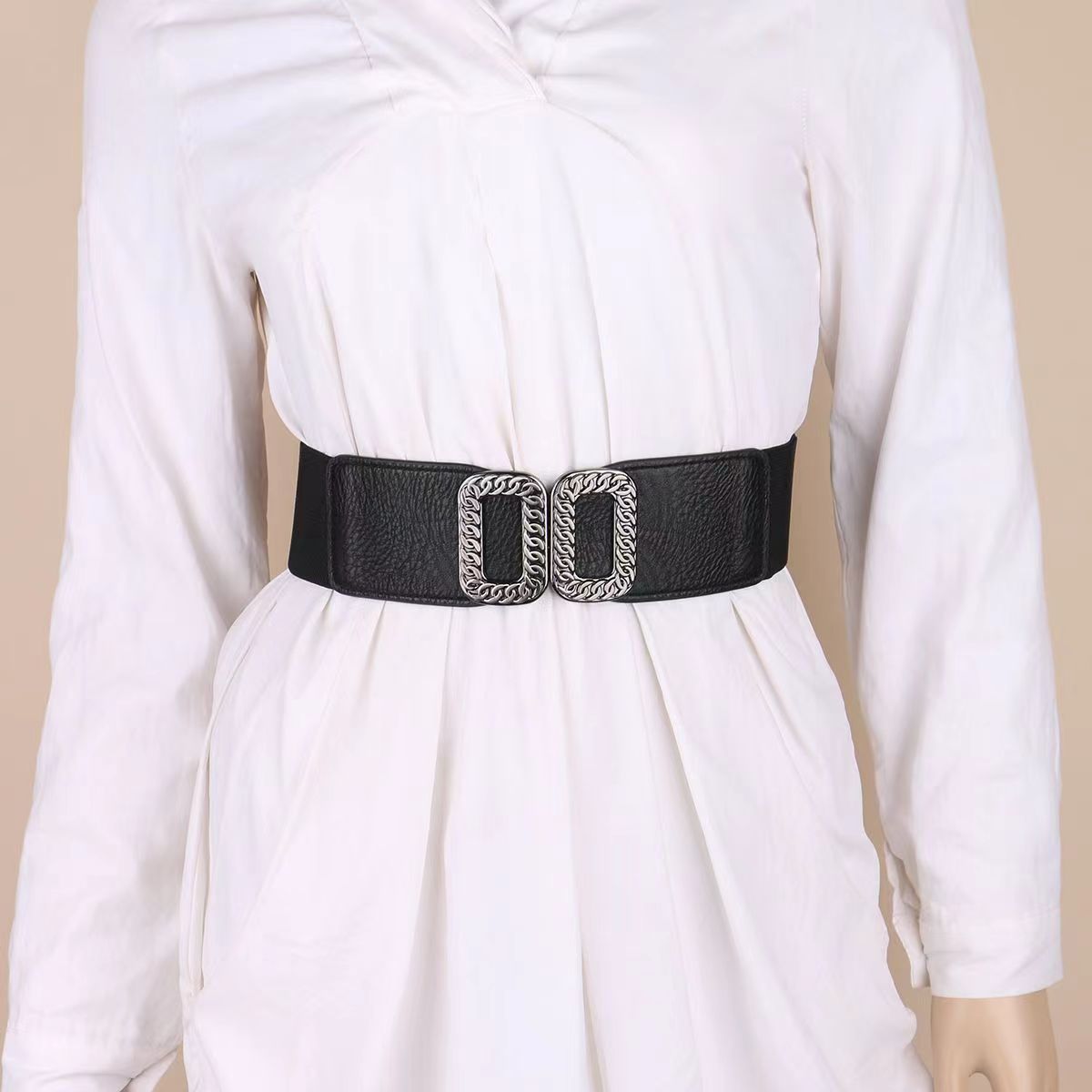 빈티지 와이드 탄성 벨트 여성 패션 올 매치 원피스 장식 다운 재킷 스웨터 허리 커버 한국 허리 블랙