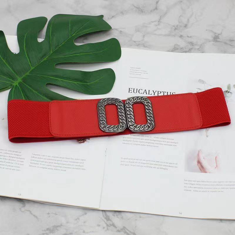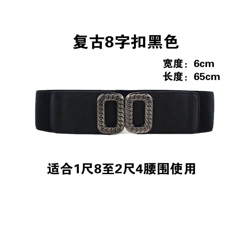 【品名】:女欧美风复古8字对扣弹力松紧腰封