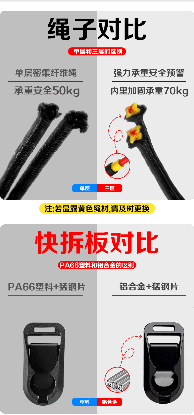 • 빠른 릴리스 버클 (알루미늄 합금) 빨간 꼬리 로프 (3 층) 2 각