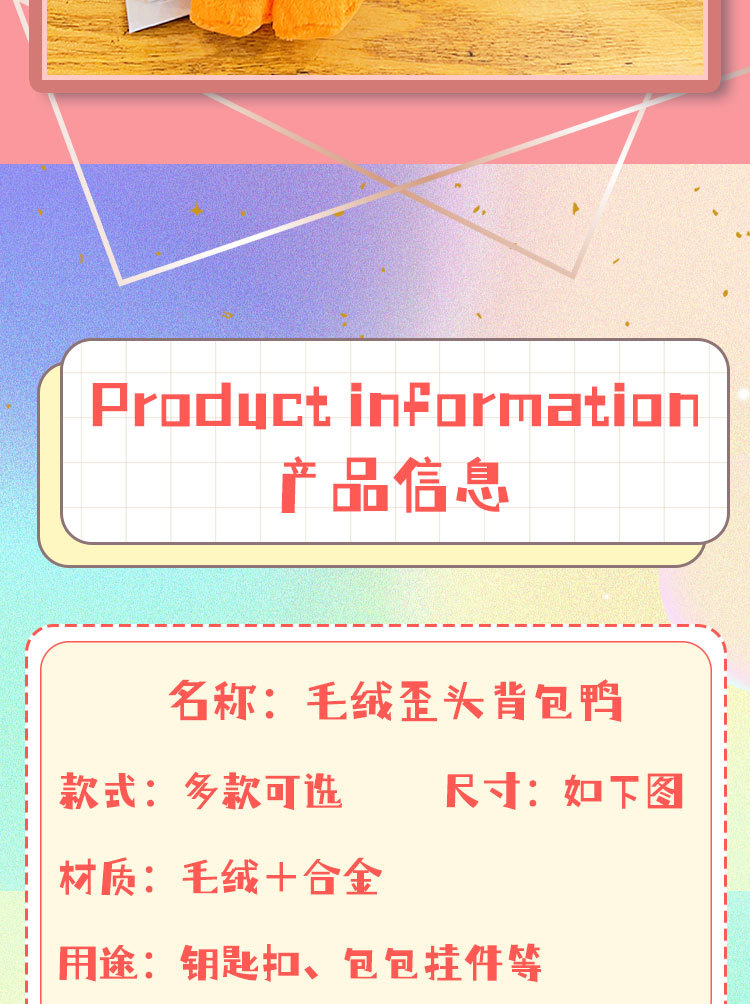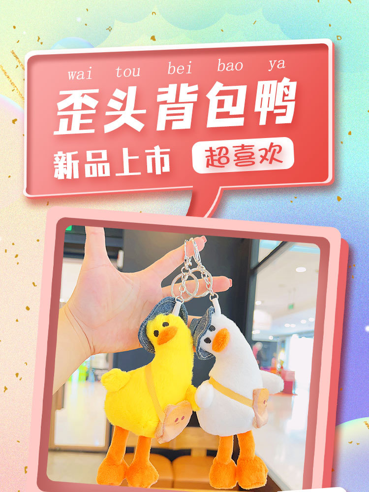 봉제 비뚤어진 머리 배낭 오리 장난감 미니 선물 귀여운 인형 배낭 펜던트 인형 장식품 가방 키 체인스토어 가기