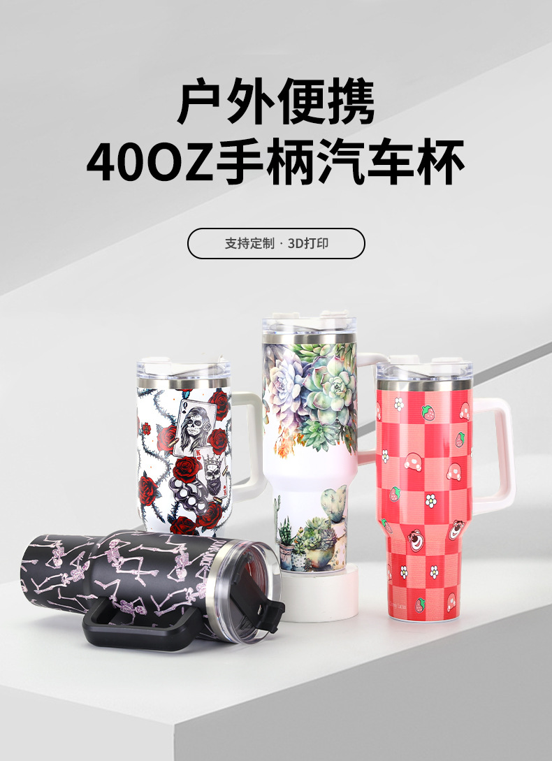 3D 인쇄 304 스테인레스 스틸 진공 컵 대용량 핸들 자동차 컵 휴대용 야외 40oz 아이스크림 컵스토어 가기