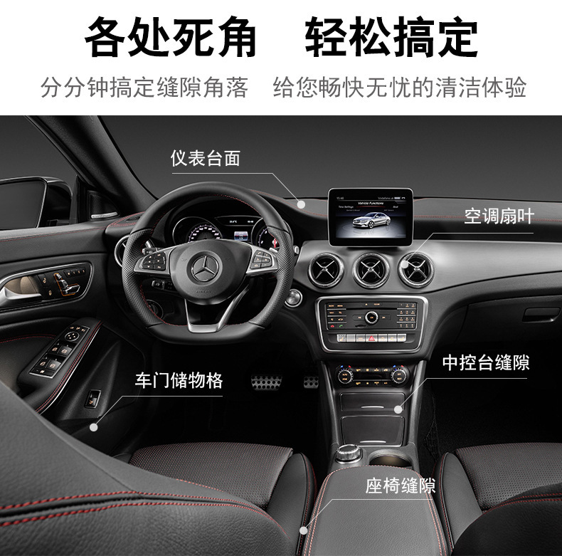 1、可擦拭汽车空调扇叶,车门储物格、中控台杯座、仪表台能容易吸灰的角落。