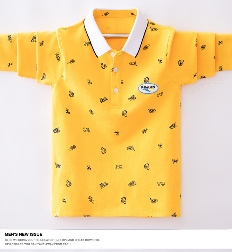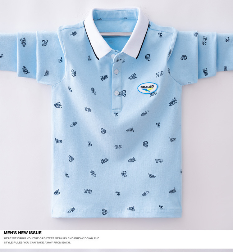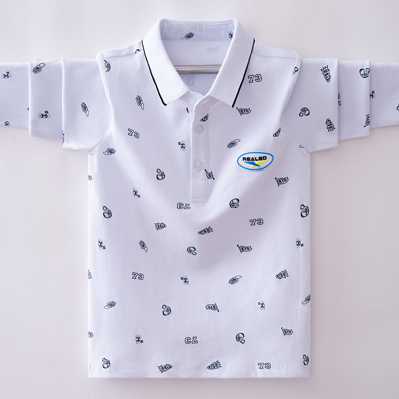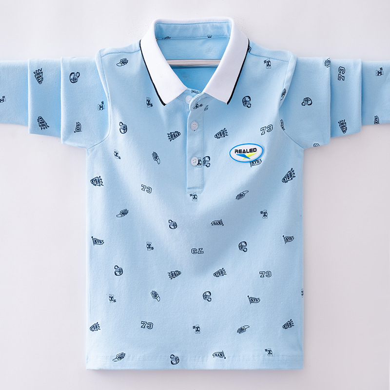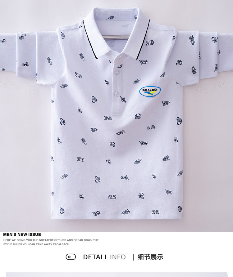 소년 긴팔 티셔츠 2025 새로운 유행 어린이 중형 및 대형 소년 티셔츠 어린이 폴로 어린이 소년 인쇄