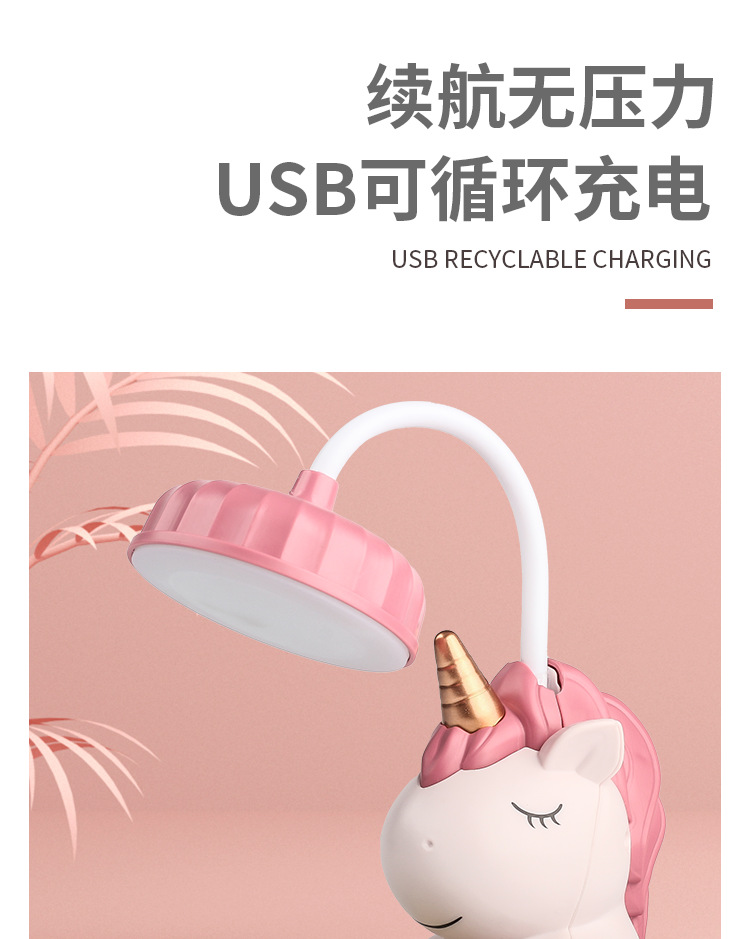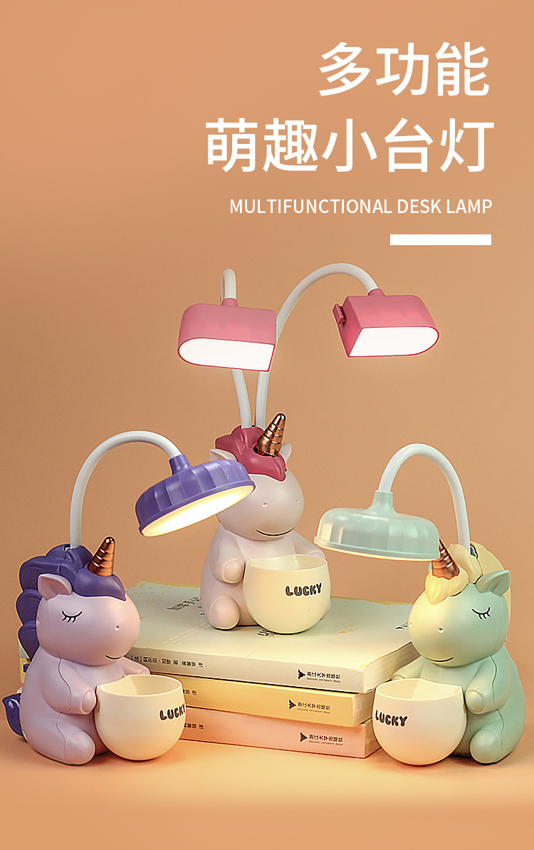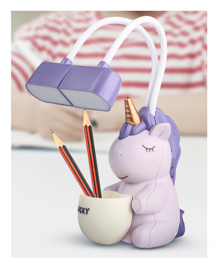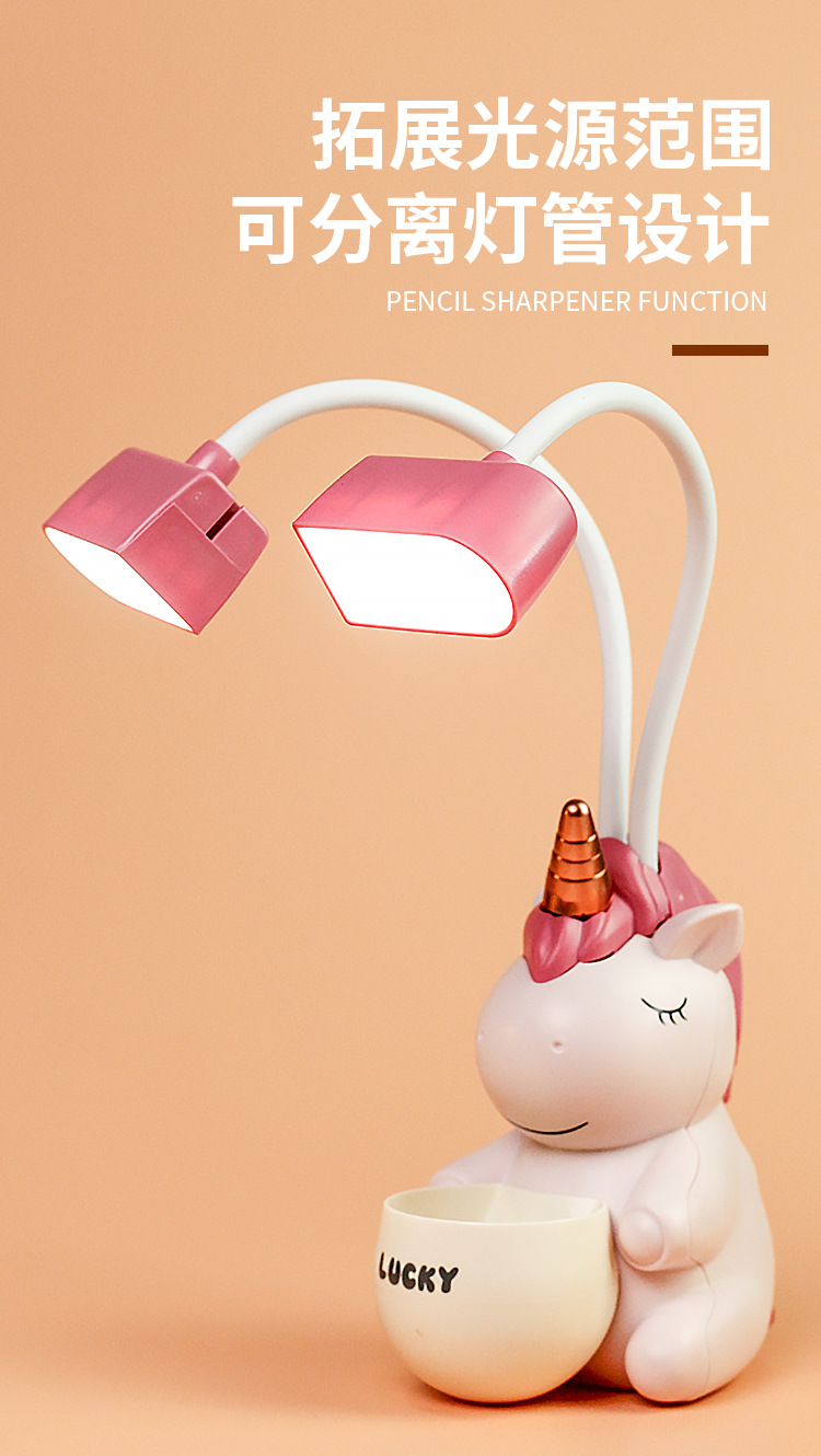 조랑말 유니콘 USB 충전 싱글 헤드 더블 헤드 펜 홀더 연필 깎기 책상 램프 데스크탑 독서 라이트 나이트 라이트 공장