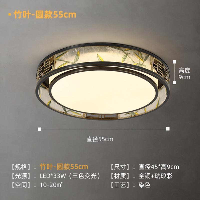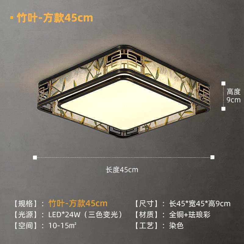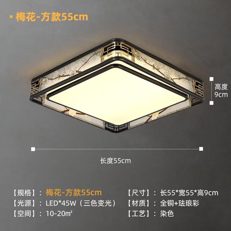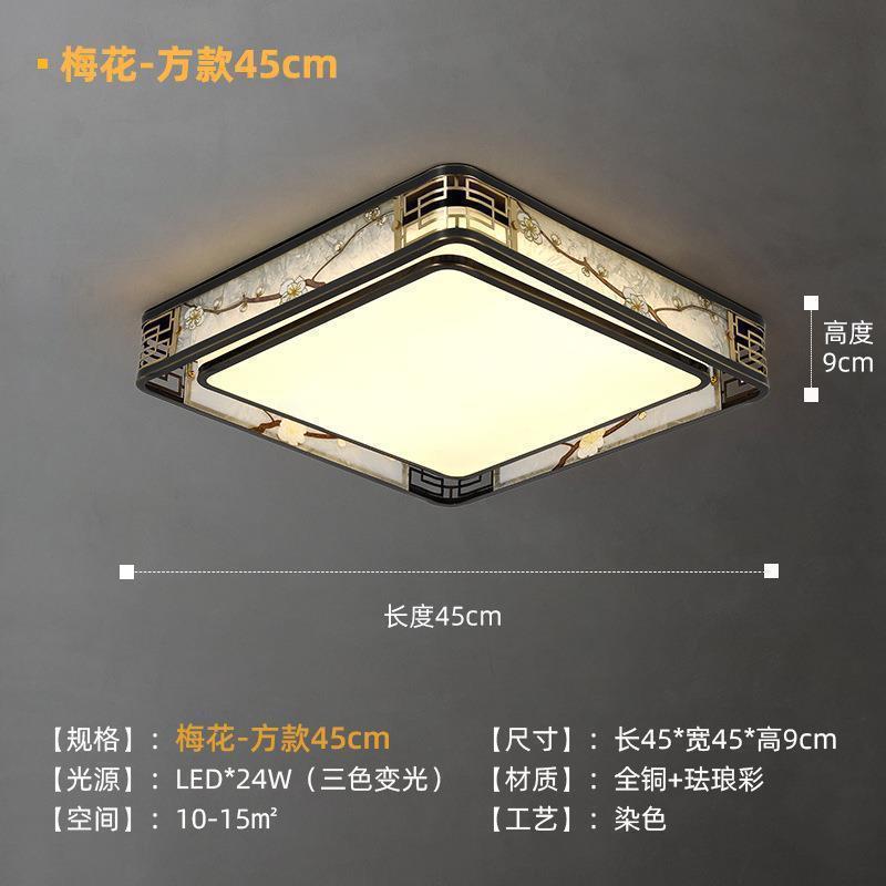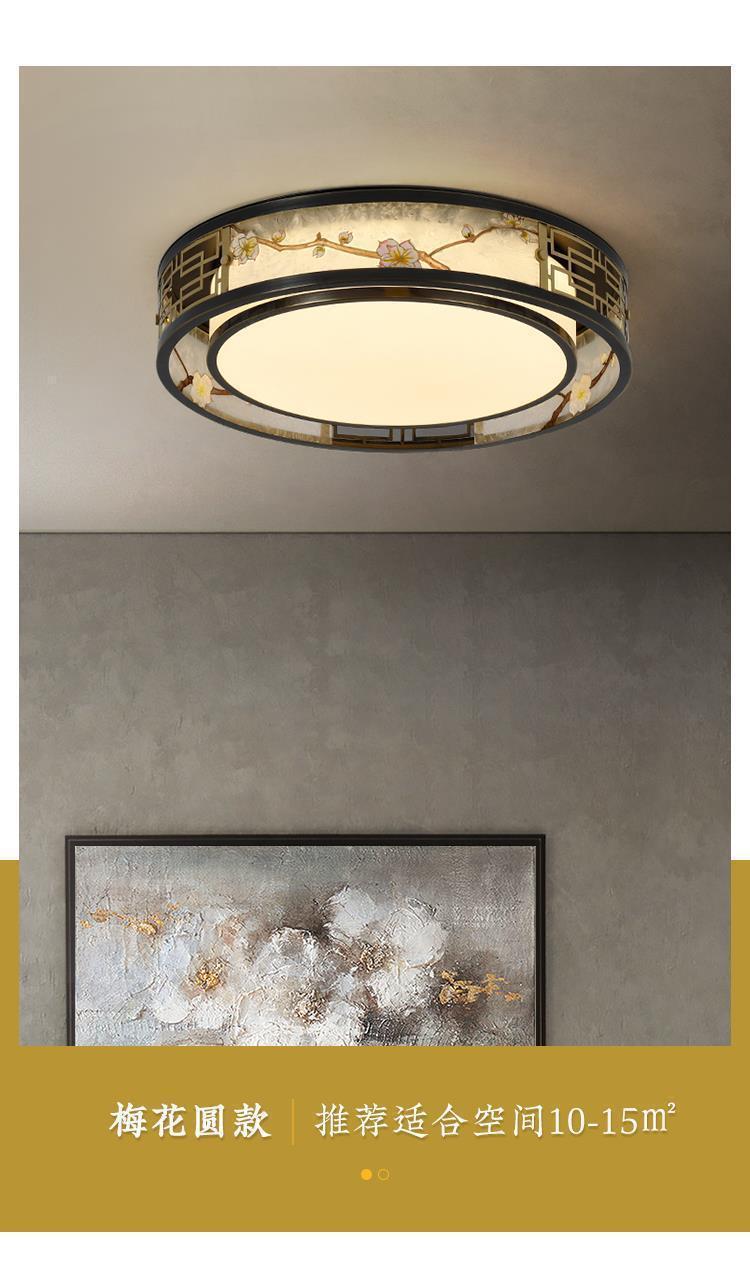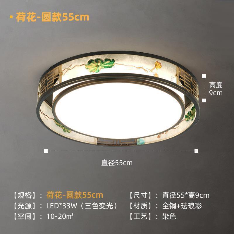 구리 새로운 중국 스타일 천장 램프 둥근 에나멜 컬러 거실 램프 중국 스타일 선 식당 침실 램프 직사각형스토어 가기