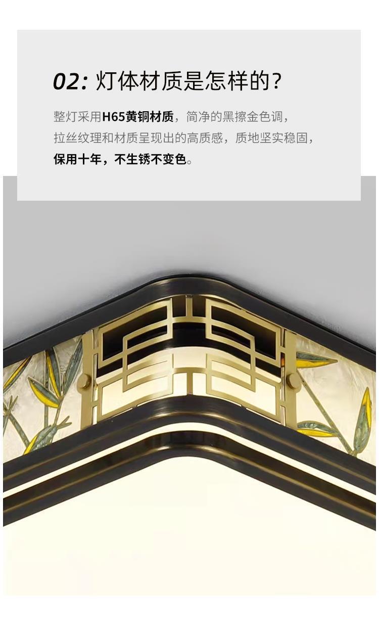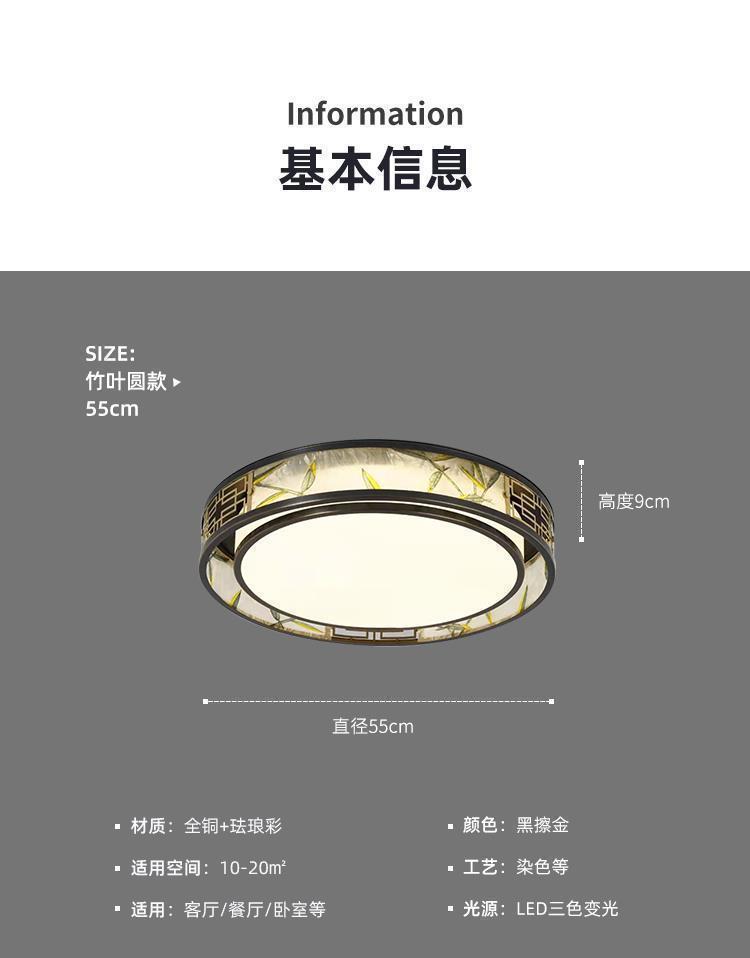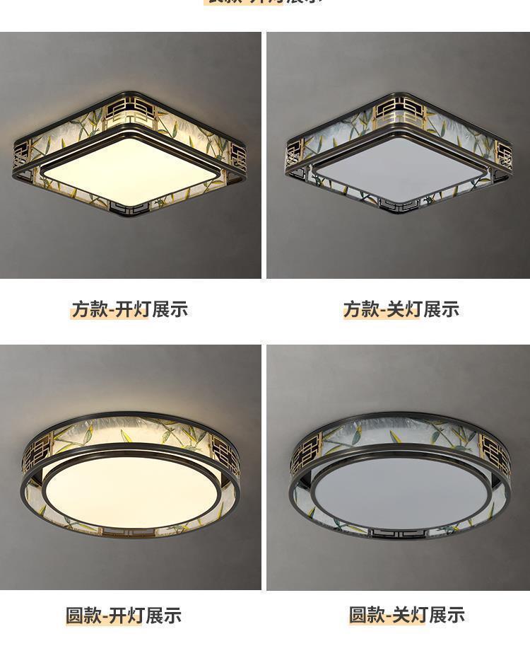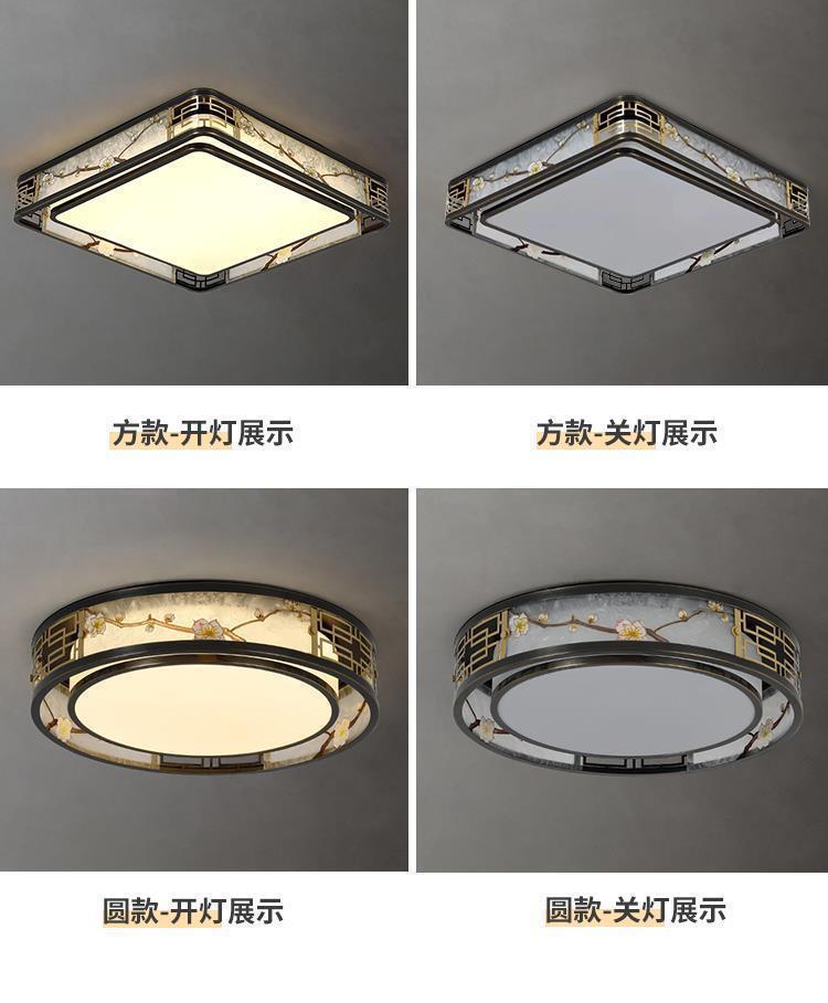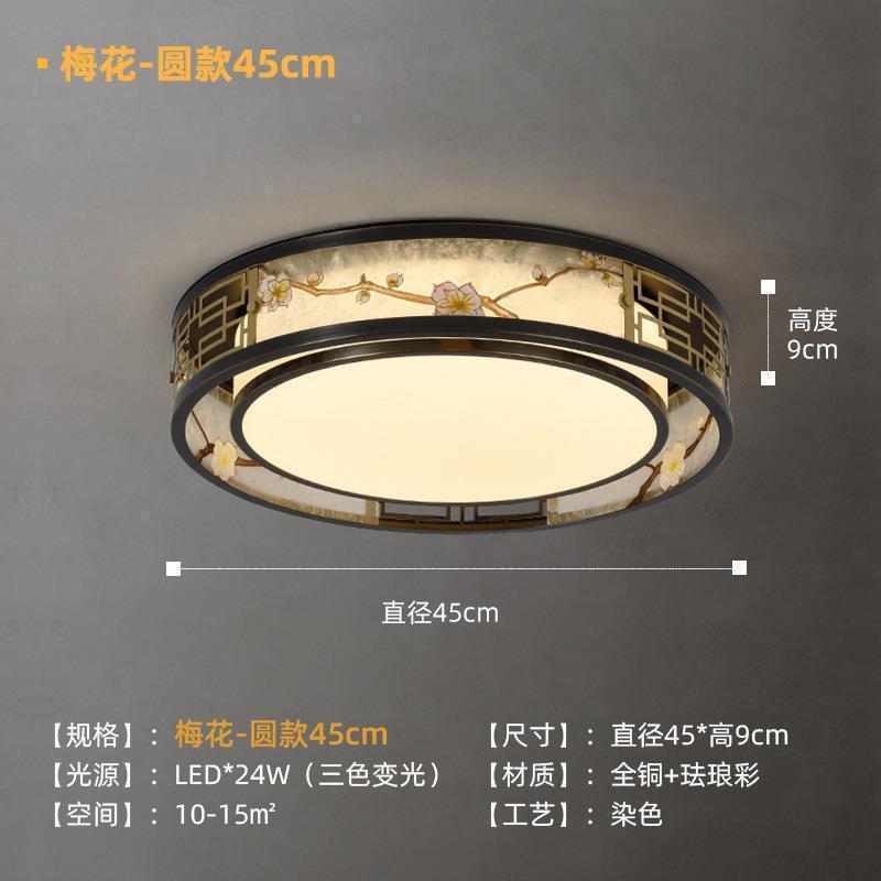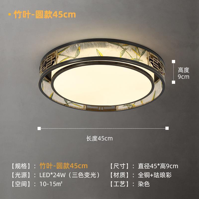 구리 새로운 중국 스타일 천장 램프 둥근 에나멜 컬러 거실 램프 중국 스타일 선 식당 침실 램프 직사각형스토어 가기