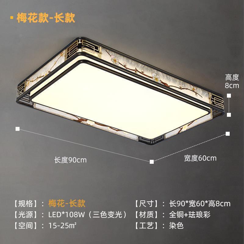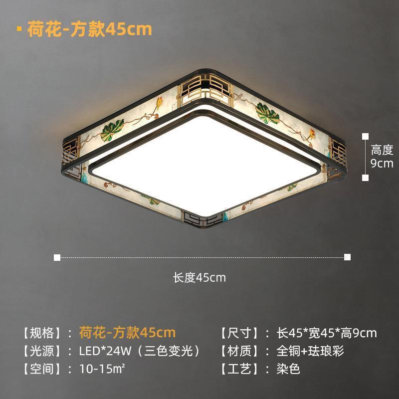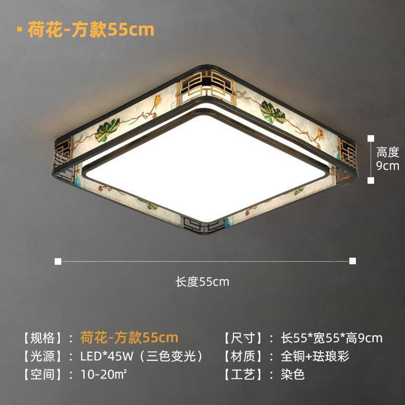 구리 새로운 중국 스타일 천장 램프 둥근 에나멜 컬러 거실 램프 중국 스타일 선 식당 침실 램프 직사각형
