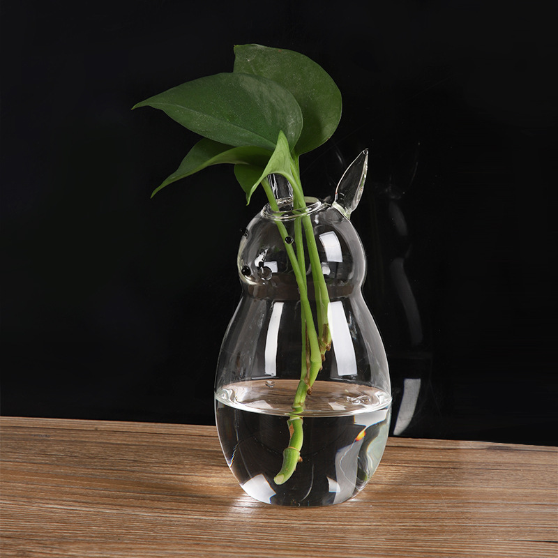 새로운 창조적 인 토끼 투명한 유리 꽃병 거실 침실 홈 장식 꽃 녹색 식물 수경 유리 꽃병