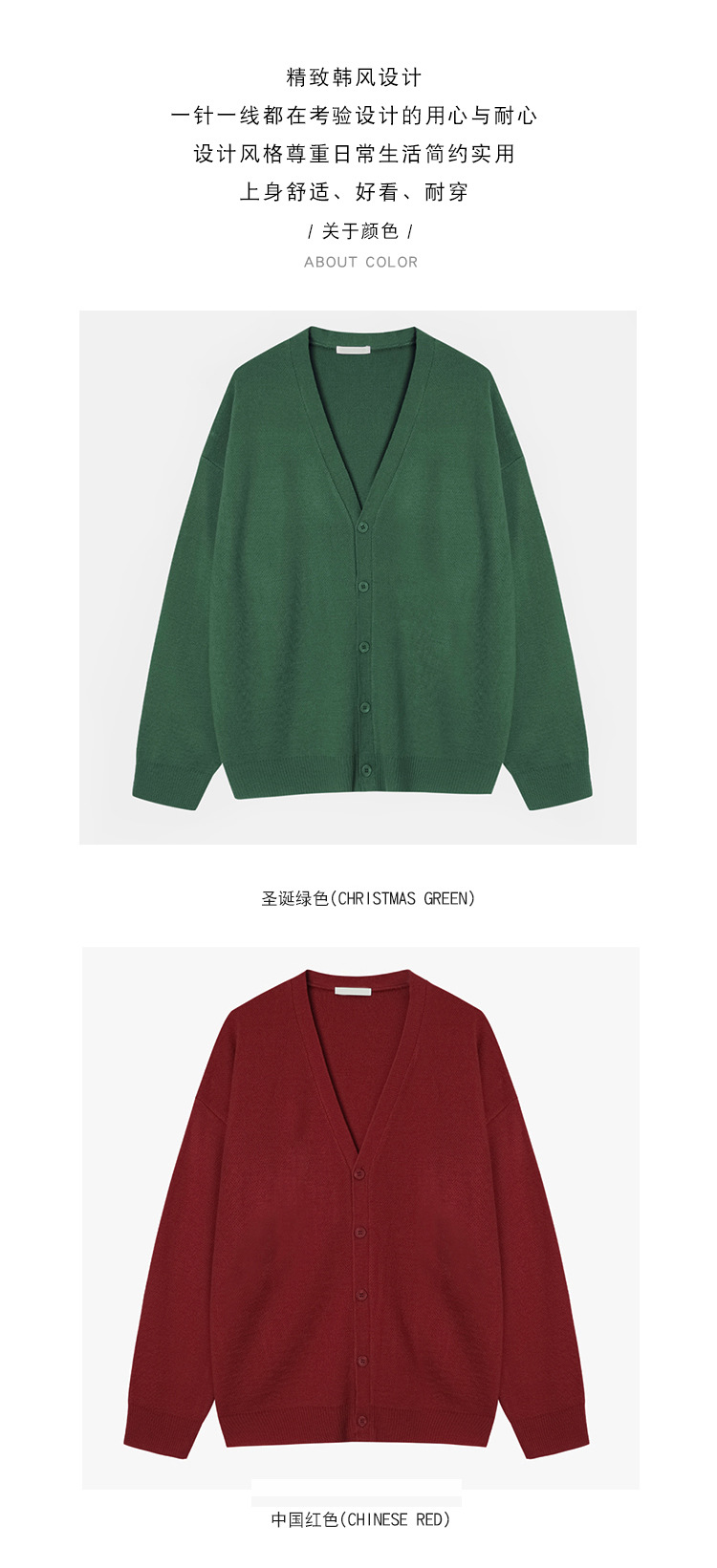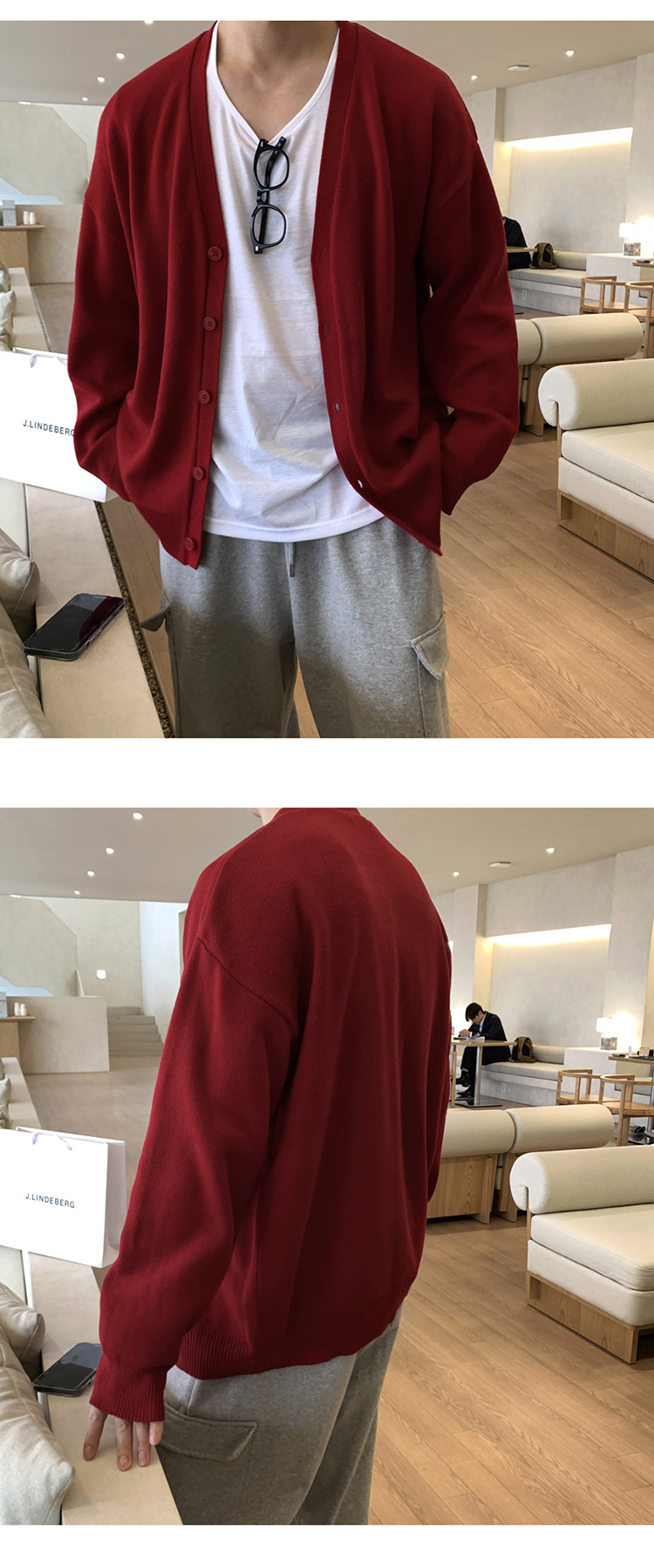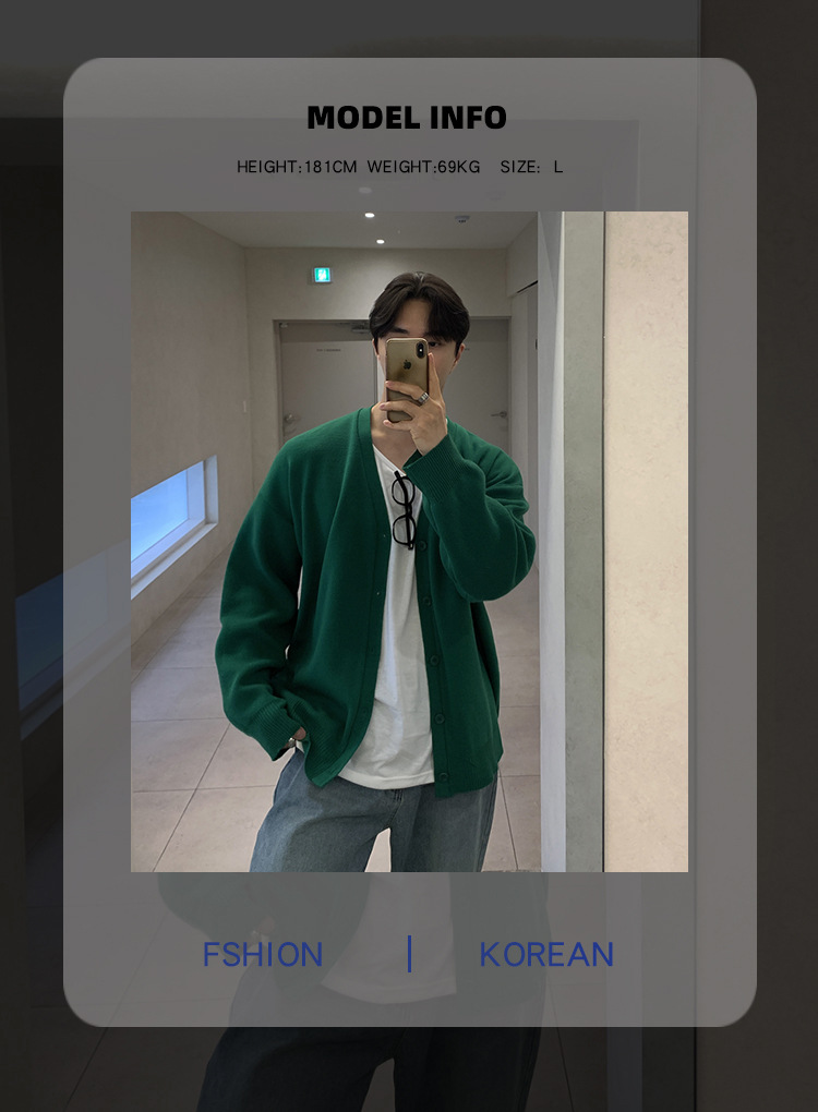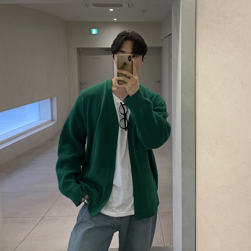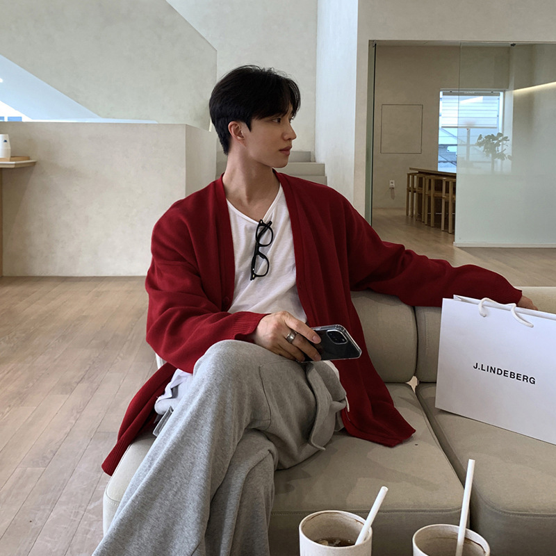 Asclo 가을과 겨울 새로운 남성 스웨터 레드 한국 하이 엔드 게으른 느슨한 V 넥 스웨터 카디건 심플스토어 가기