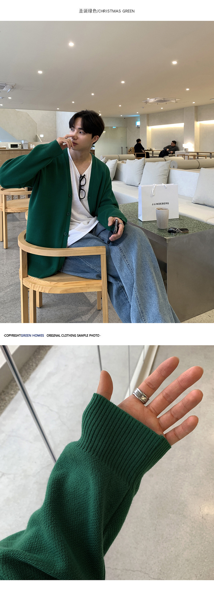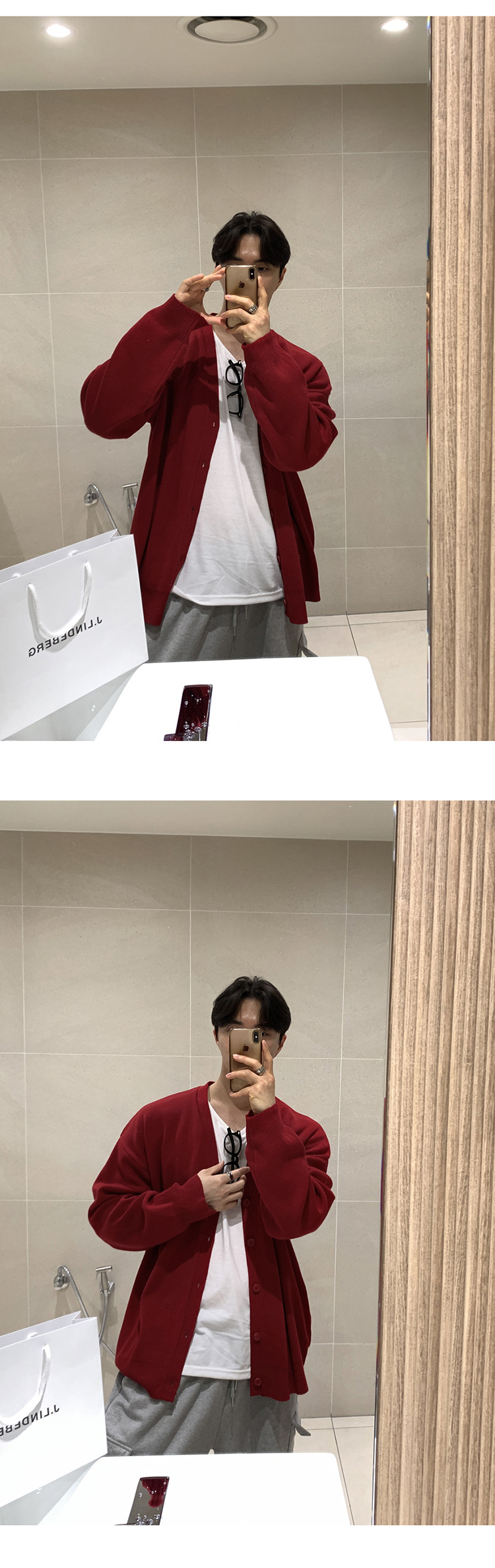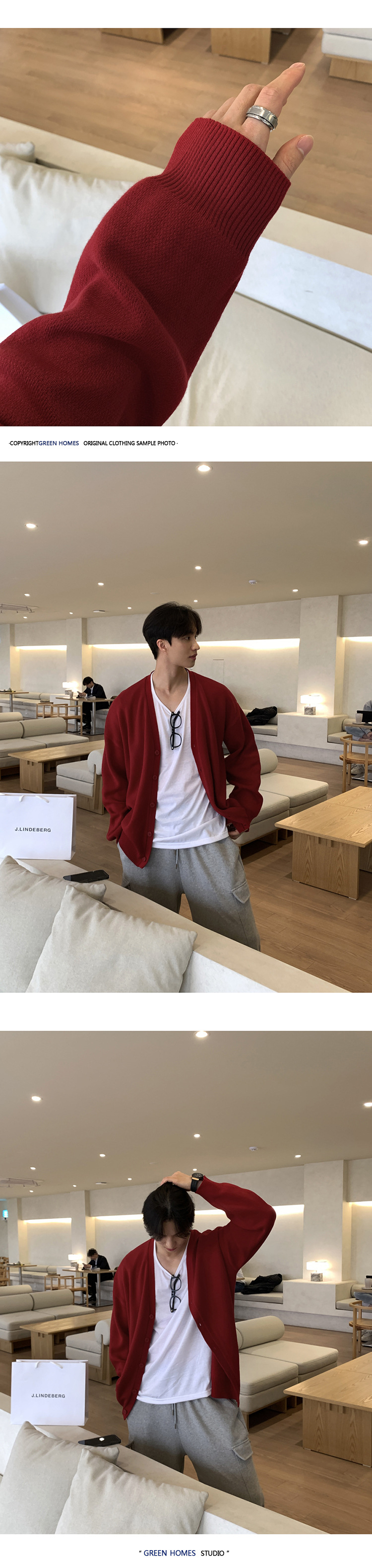 Asclo 가을과 겨울 새로운 남성 스웨터 레드 한국 하이 엔드 게으른 느슨한 V 넥 스웨터 카디건 심플스토어 가기