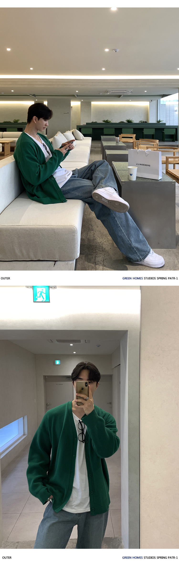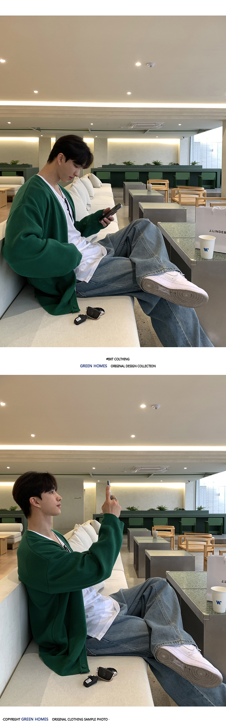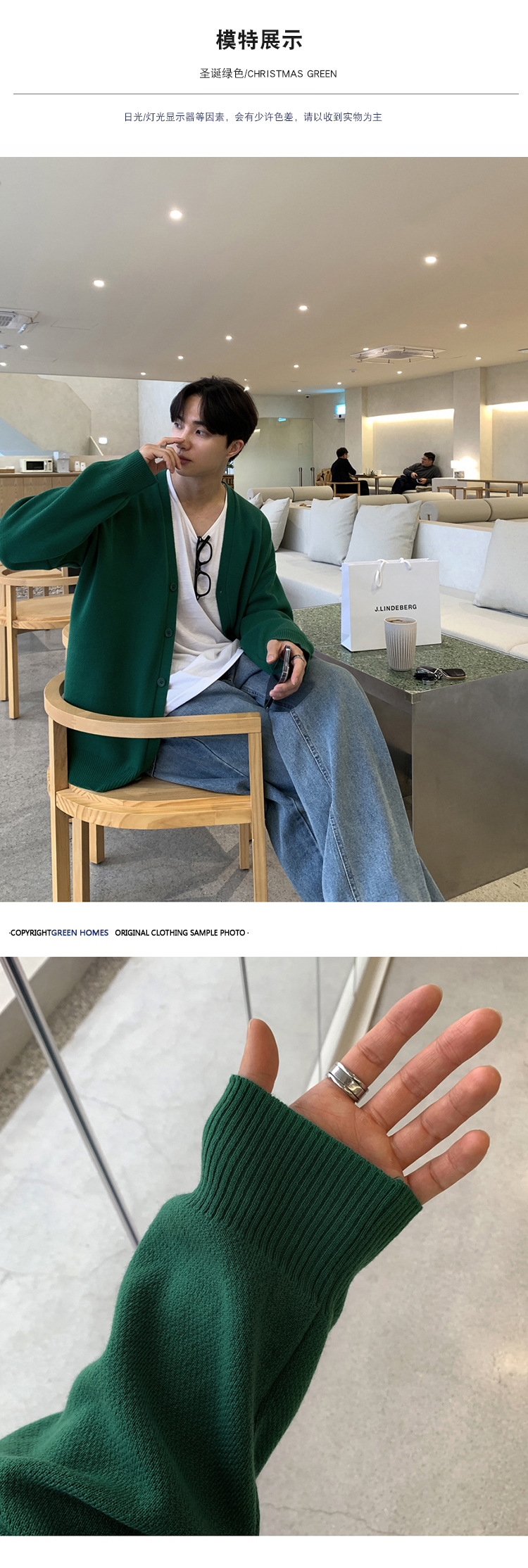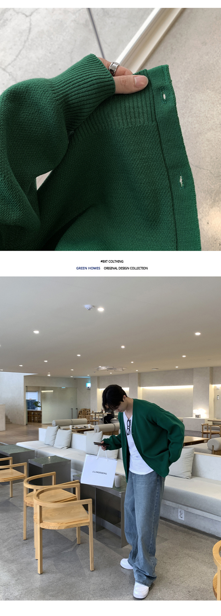 Asclo 가을과 겨울 새로운 남성 스웨터 레드 한국 하이 엔드 게으른 느슨한 V 넥 스웨터 카디건 심플스토어 가기